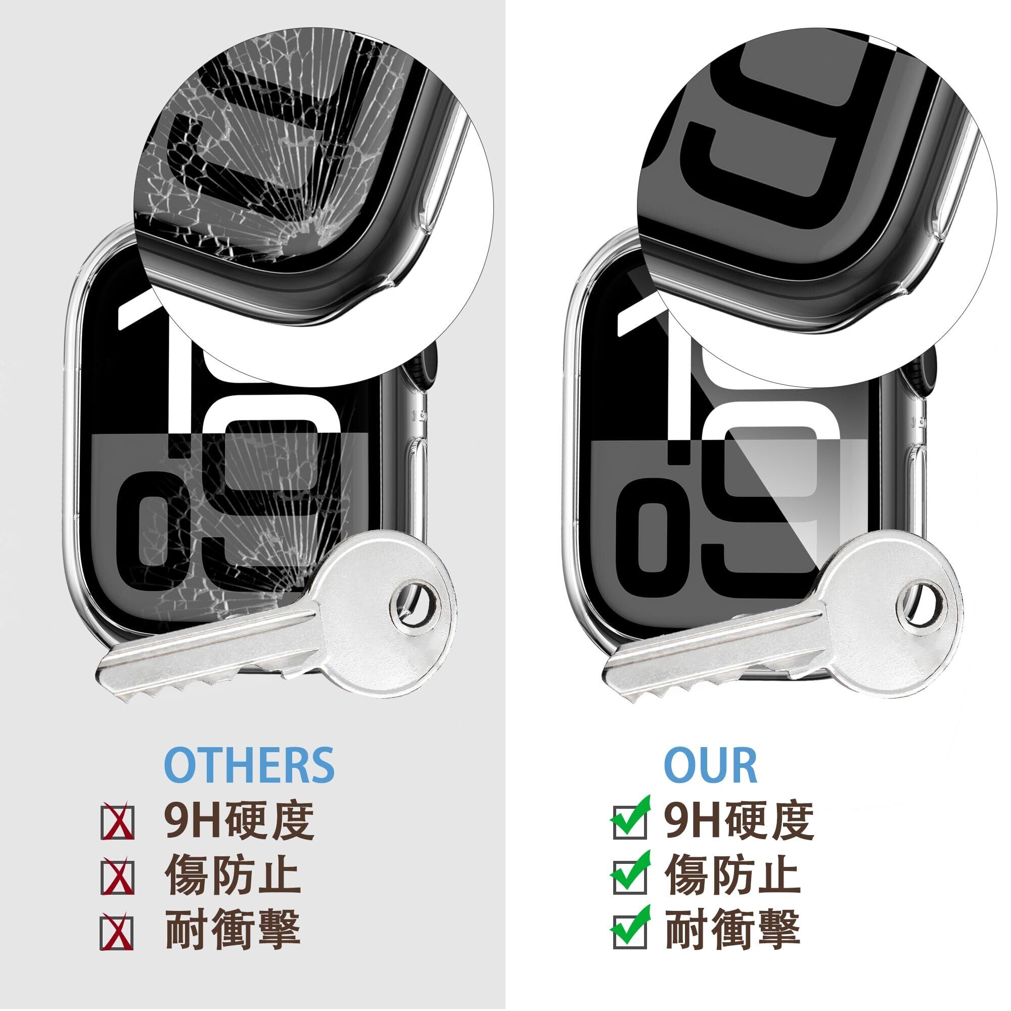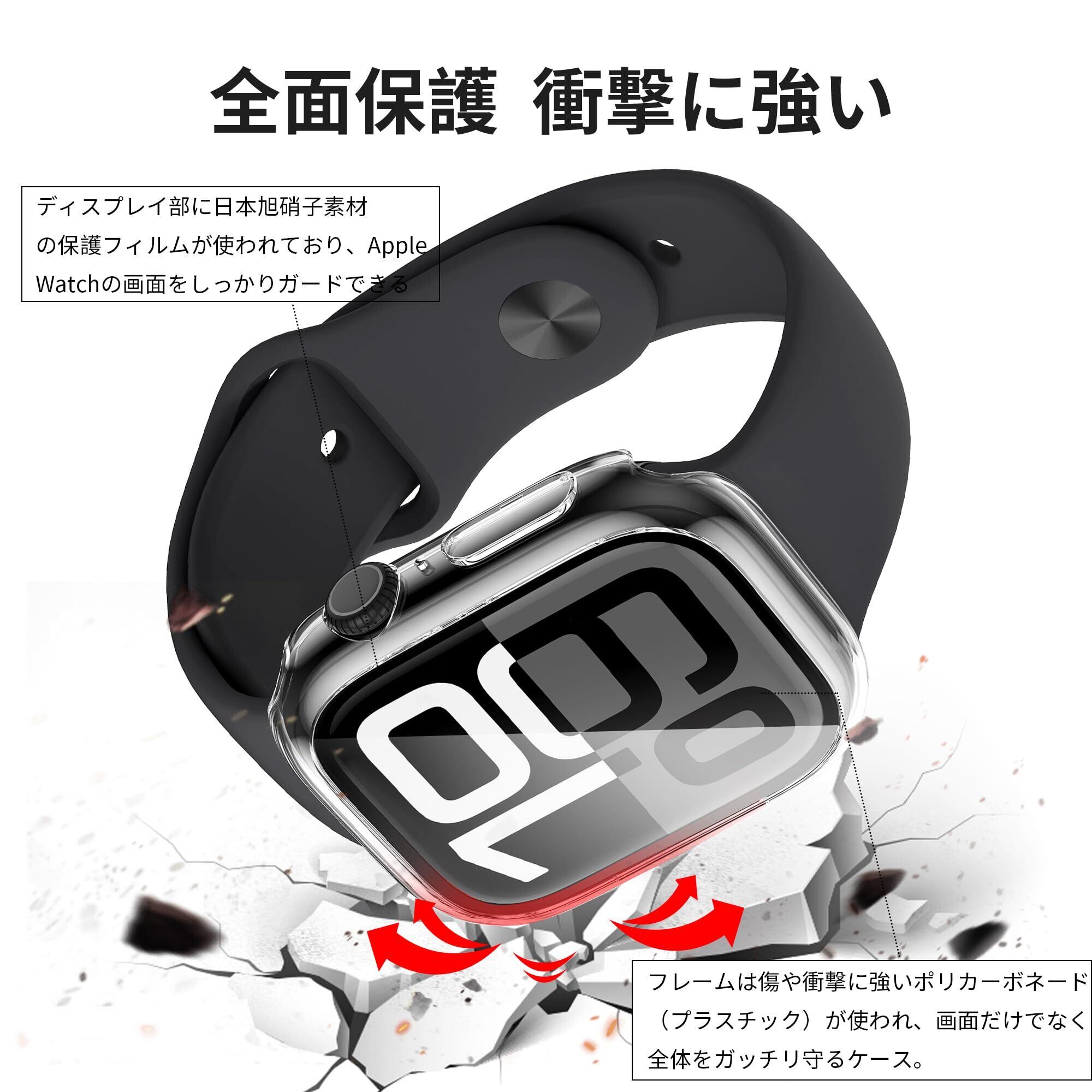 【全面保護、傷防止、衝撃防止】全面保護デザインで、落下、傷や埃などから360度全方位保護しています 。 Apple Watch 10/11 を可能な限り長く新しく保つ。素材が丈夫で、耐擦傷性があり、指紋がつきにくく、耐久性があり、変形しにくく、破損しにくいです。