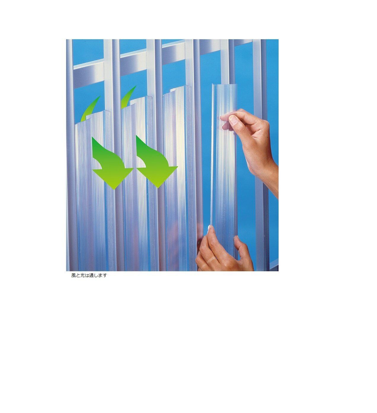 特長:採光性もあり、風も通す目かくし材。両面テープで装着も簡単。