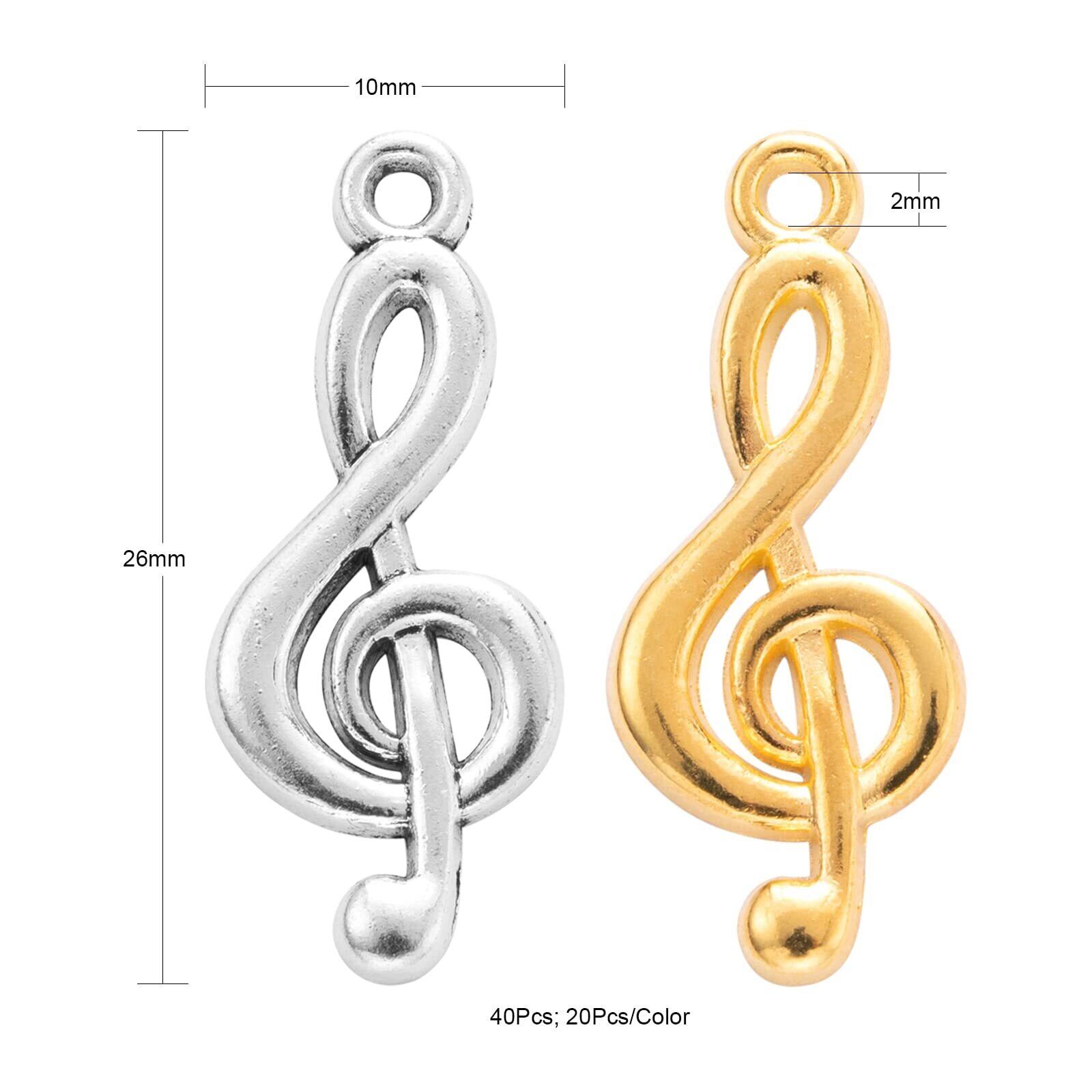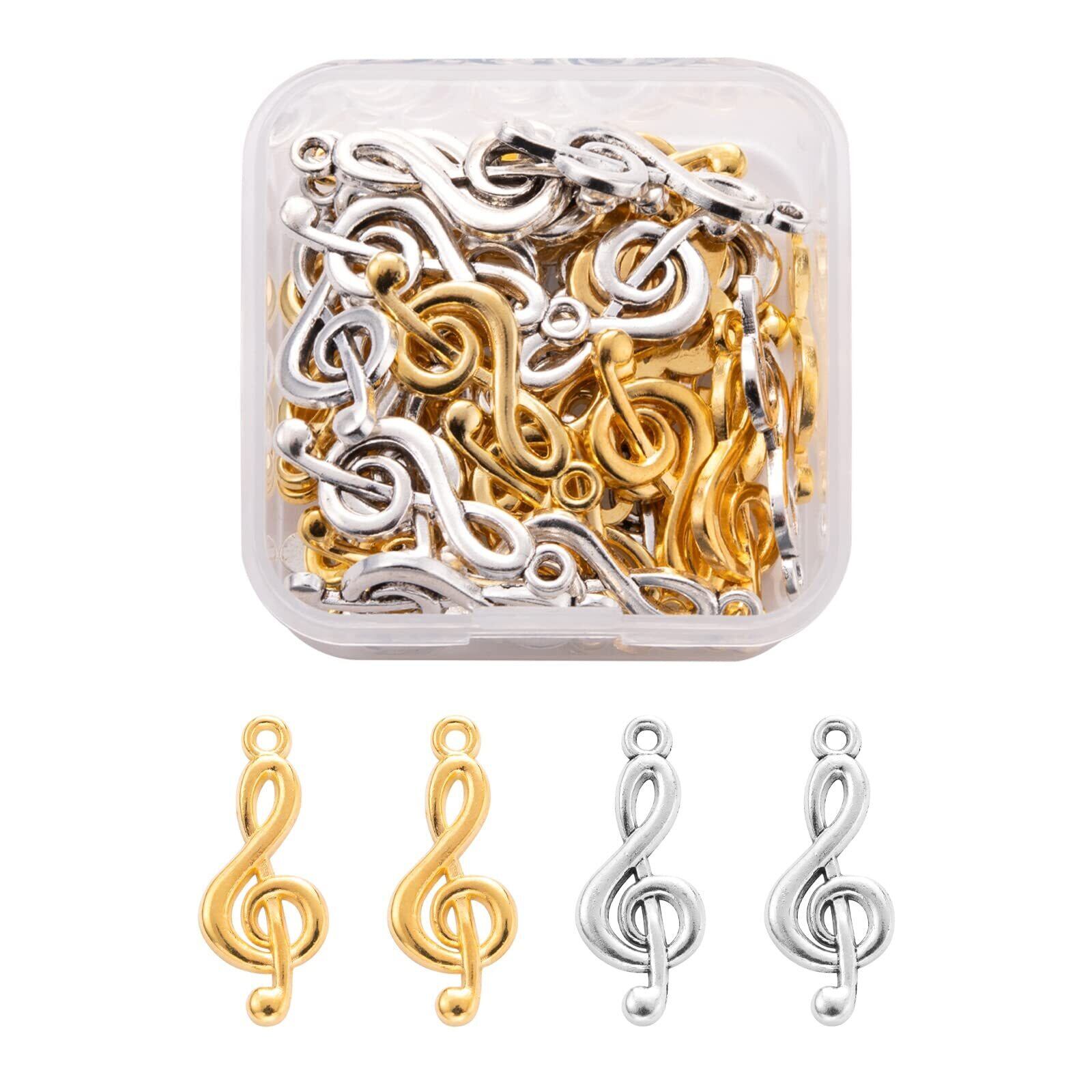 [BB Beadthoven] 約40個/箱 音符 合金ペンダント ト音記号 ミュジック チベット風 メタルチャーム アクセサリーパーツ ジュエリー用 DIY ハンドメイド 手芸材料 手作り素材 クラフト用品 アンティークゴールド&アンティークシルバー