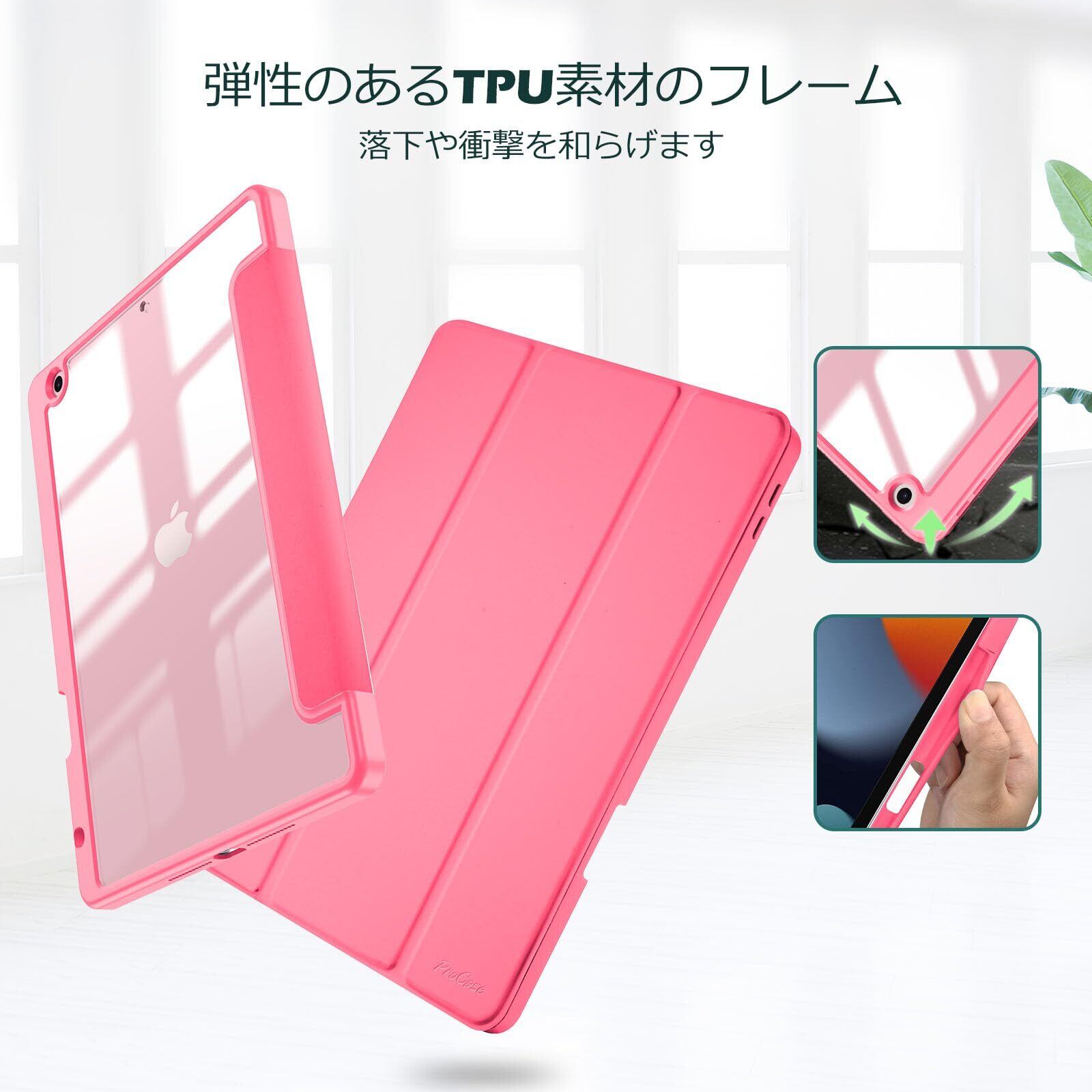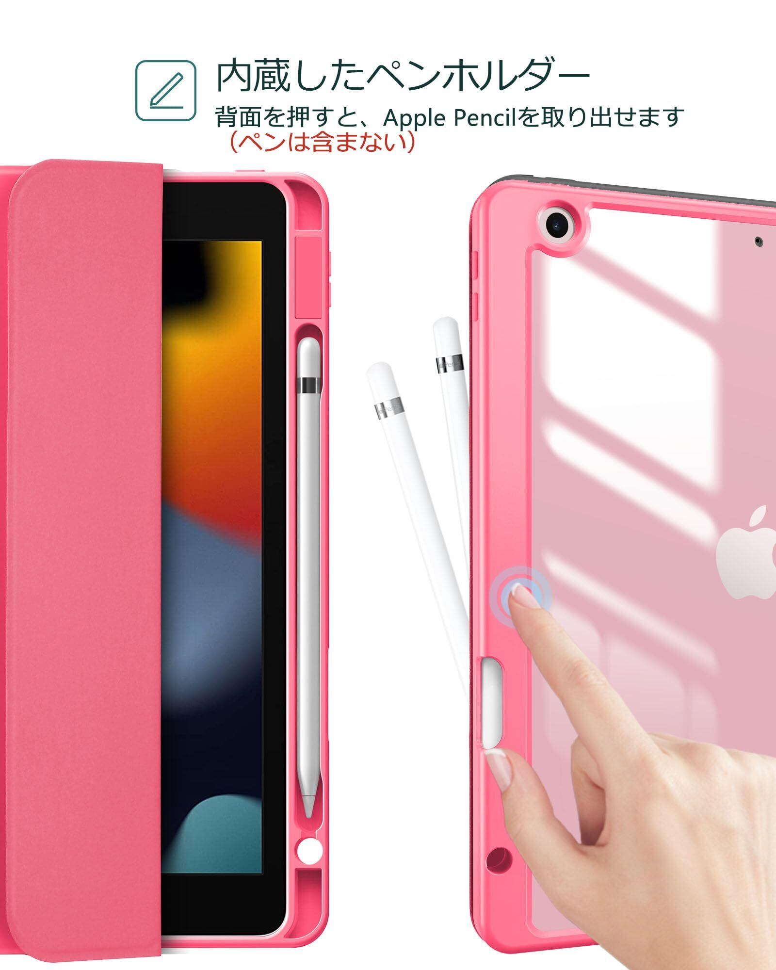 透明のPCバックカバーはアイコンを表示し、iPadを衝撃、指紋、引っかき傷から保護します。内蔵したマグネットにより、オートスリープ/ウェイクに対応します。