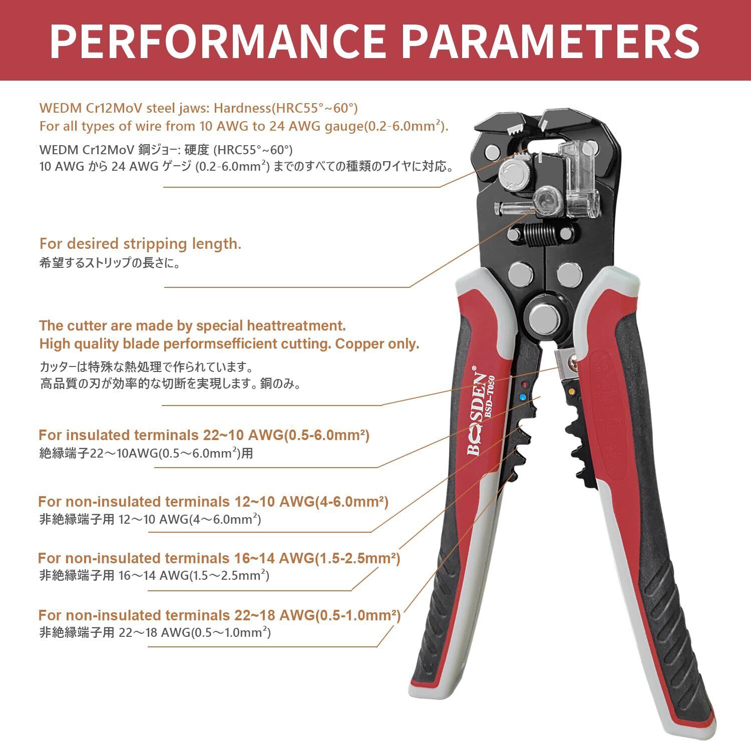 BOOSDEN ワイヤーストリッパー 自動調節 ケーブルストリッパー 電線ストリッパー 配線剥き ワイヤーカット 圧着 電工 工具 10-24 AWG