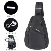 【多機能ボディバッグ】人間工学+左右付け替え可能+イヤホン穴+夜間反射。気楽に片手で携帯電話が使えますし、両手をスマホから解放して音楽をお楽しみます。線状の夜間反射素材をつけて夜間時の出行に安全性を高めます。