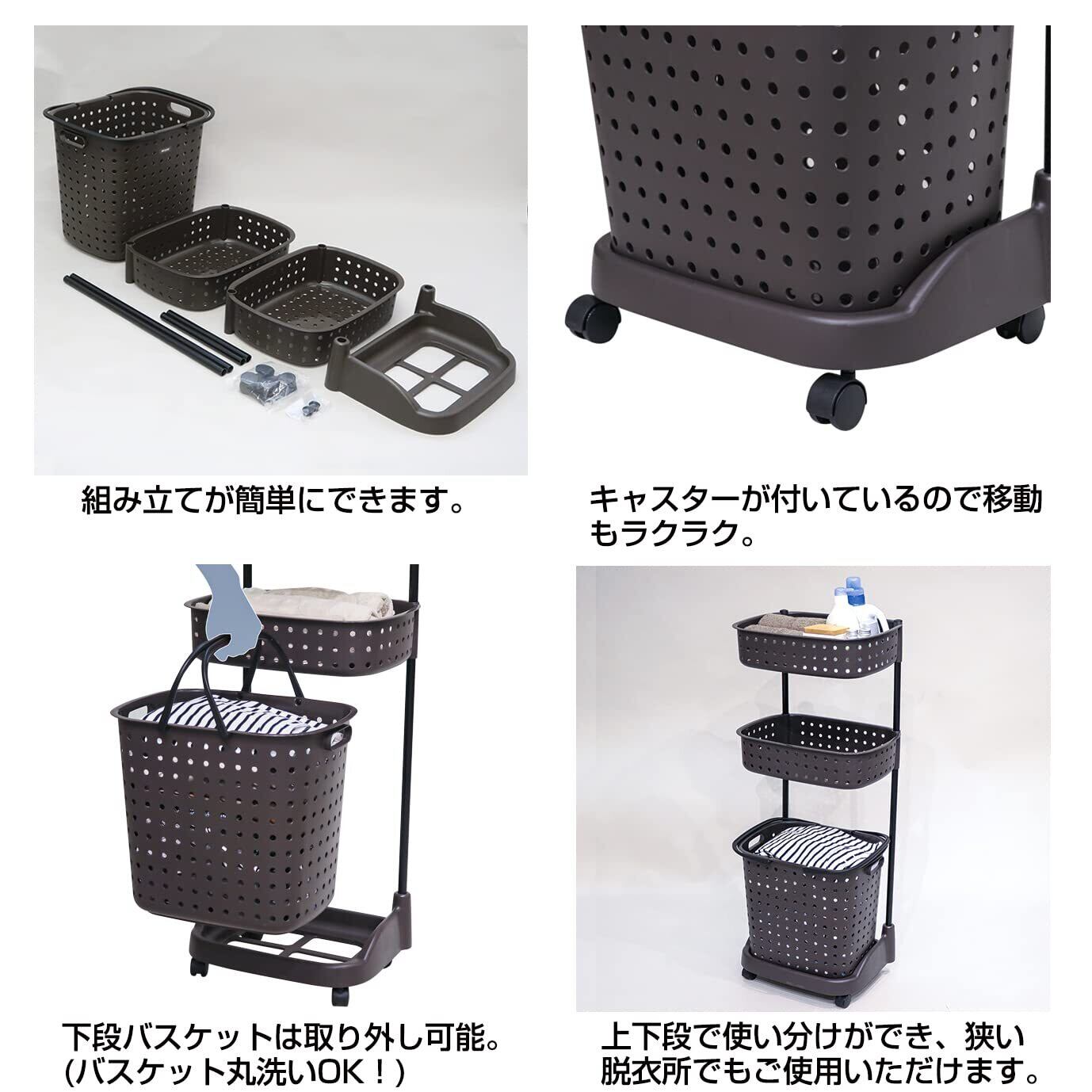 [レクエアランドリーバスケット3段 ダークブラウン]