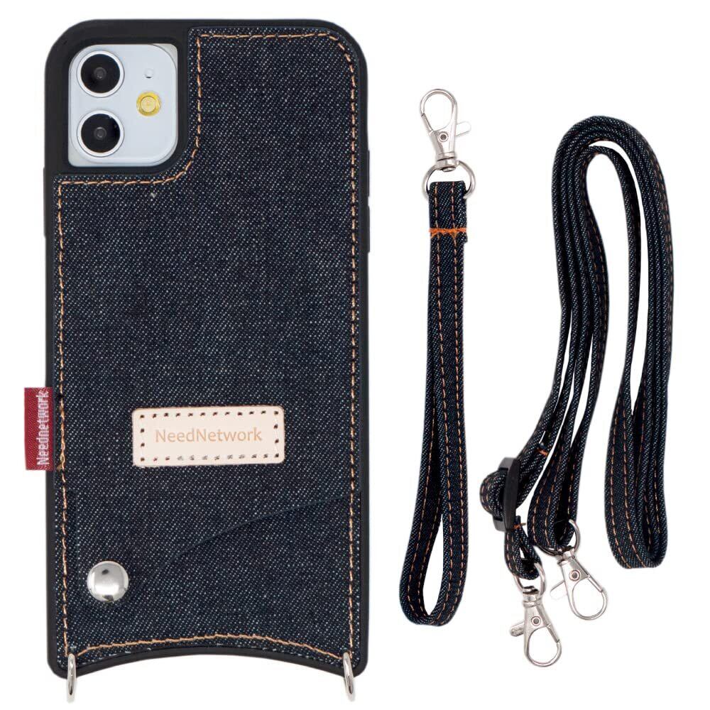 [ニードネットワーク] 日本が誇るデニム iPhone11 用 スマホ ケース ショルダー ショルダー付き カード入れ ショルダータイプ スマホショルダー スマホショダーストラップ