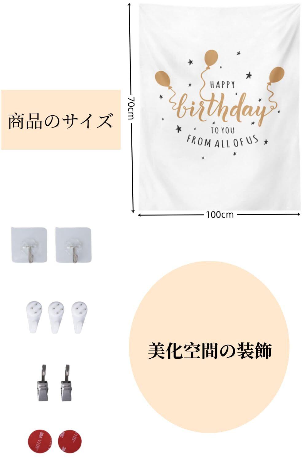 【誕生日 タペストリー】鮮やかな色。 高解像度のデジタル印刷、鮮やかなディテール、優れた芸術的効果。壁に貼るだけで、お誕生日会をパッと華やかな雰囲気になるフォトポスター。