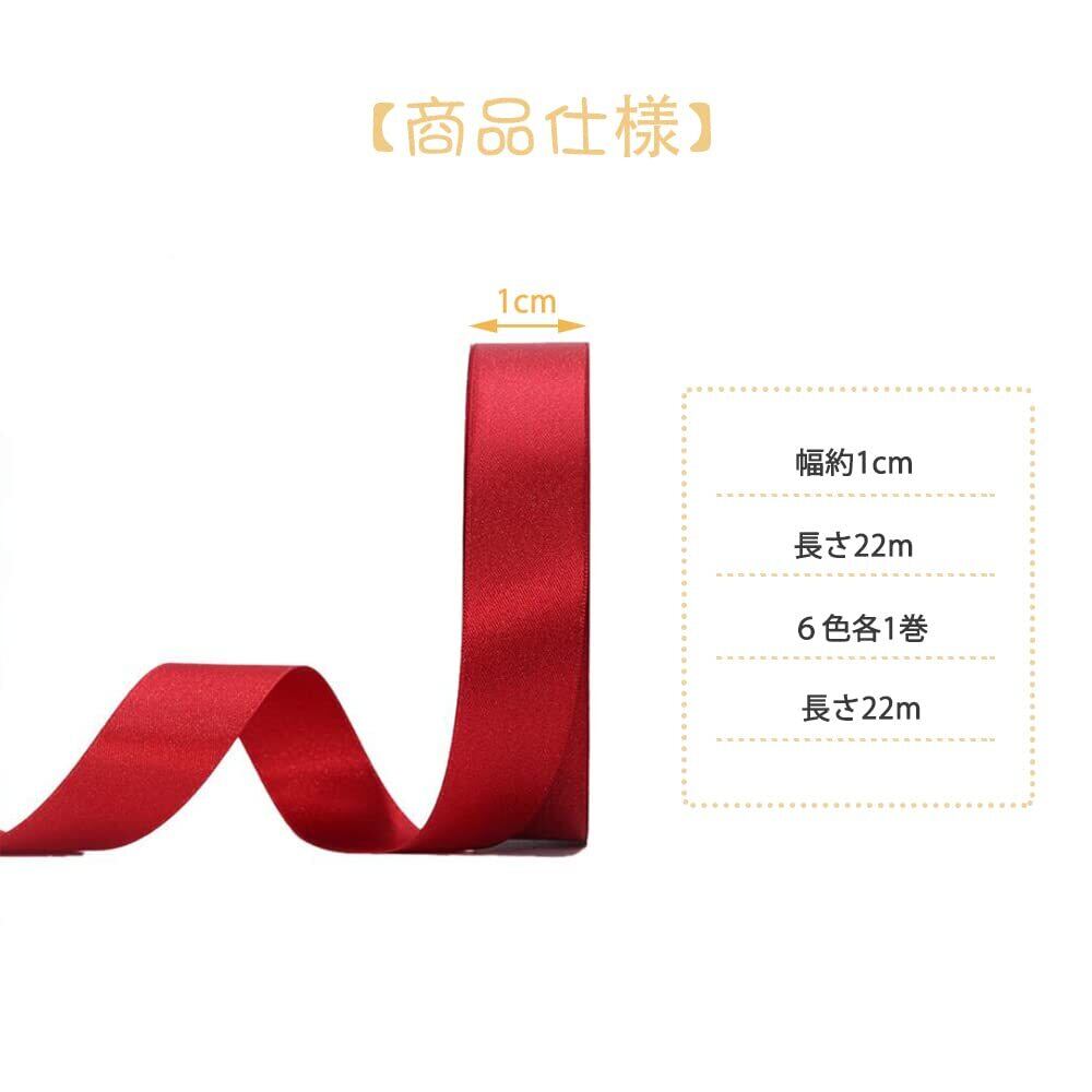 GOODCHI サテンリボン ちょう結び 包装 リボン 6色セット 幅10mm 長22m DIY 手芸用品 花材 ギフトラッピング用リボン ハンドメイド用リボン