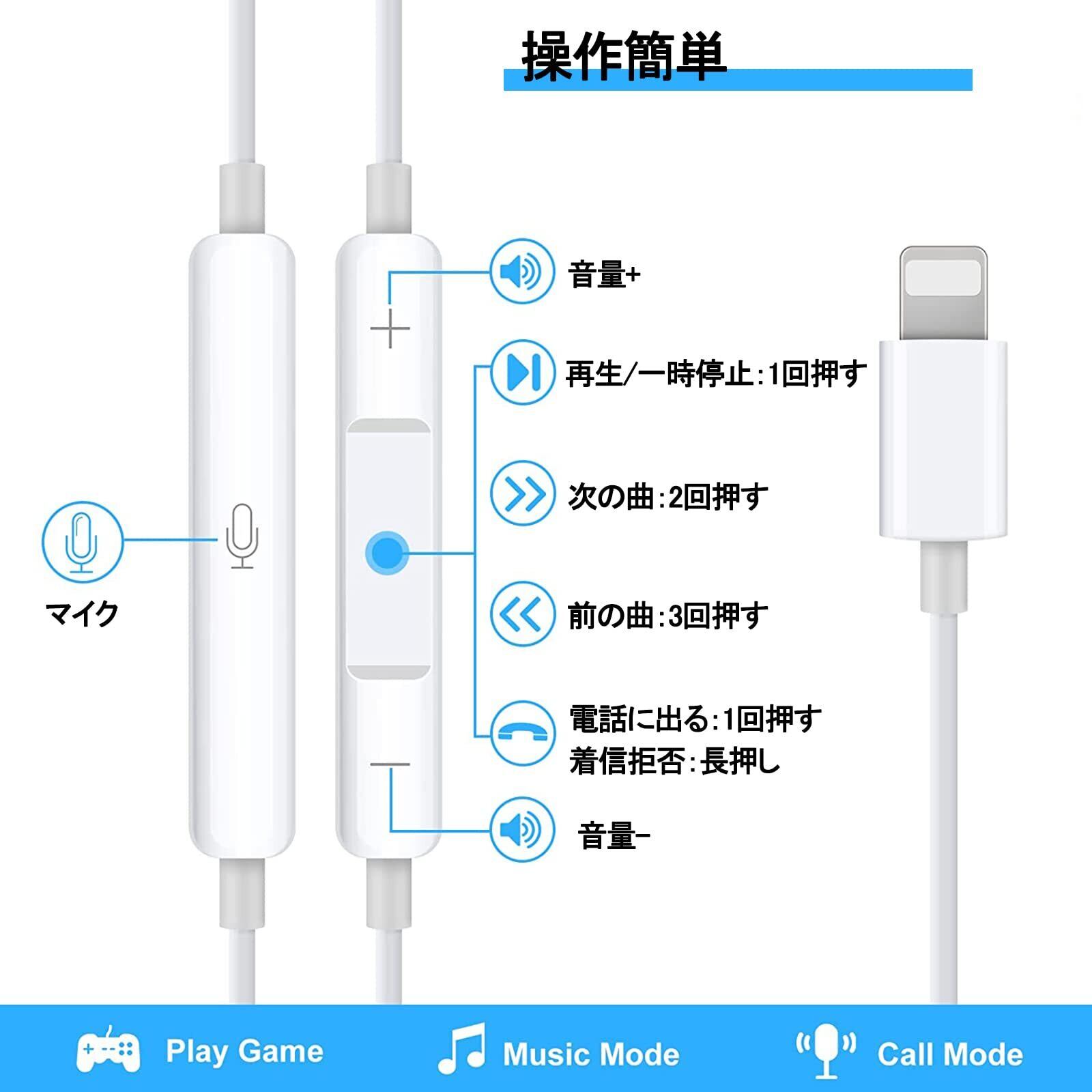 [イヤホン iPhone 用 有線 マイク付き 重低音 ステレオイヤフォン リモコン付き 音量調整 通話対応 音漏れ防止 カナル型 ヘッドホン 対応 iPhone14/14Pro/14Plus/14Pro Max/13/12/11/Mini/SE/X/XS/XR/XS Max/8/8P/7/7P/iPad/iPod 対応]