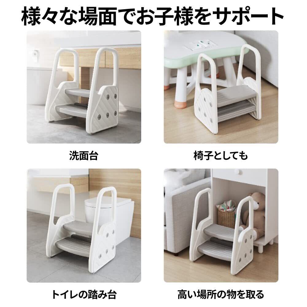 SUGGEST 子供用 踏み台 手すり付き 2段 ステップ台 キッズ 滑り止め 簡単組立 子供用踏み台 トイレ キッチン 洗面所 保育園 幼稚園