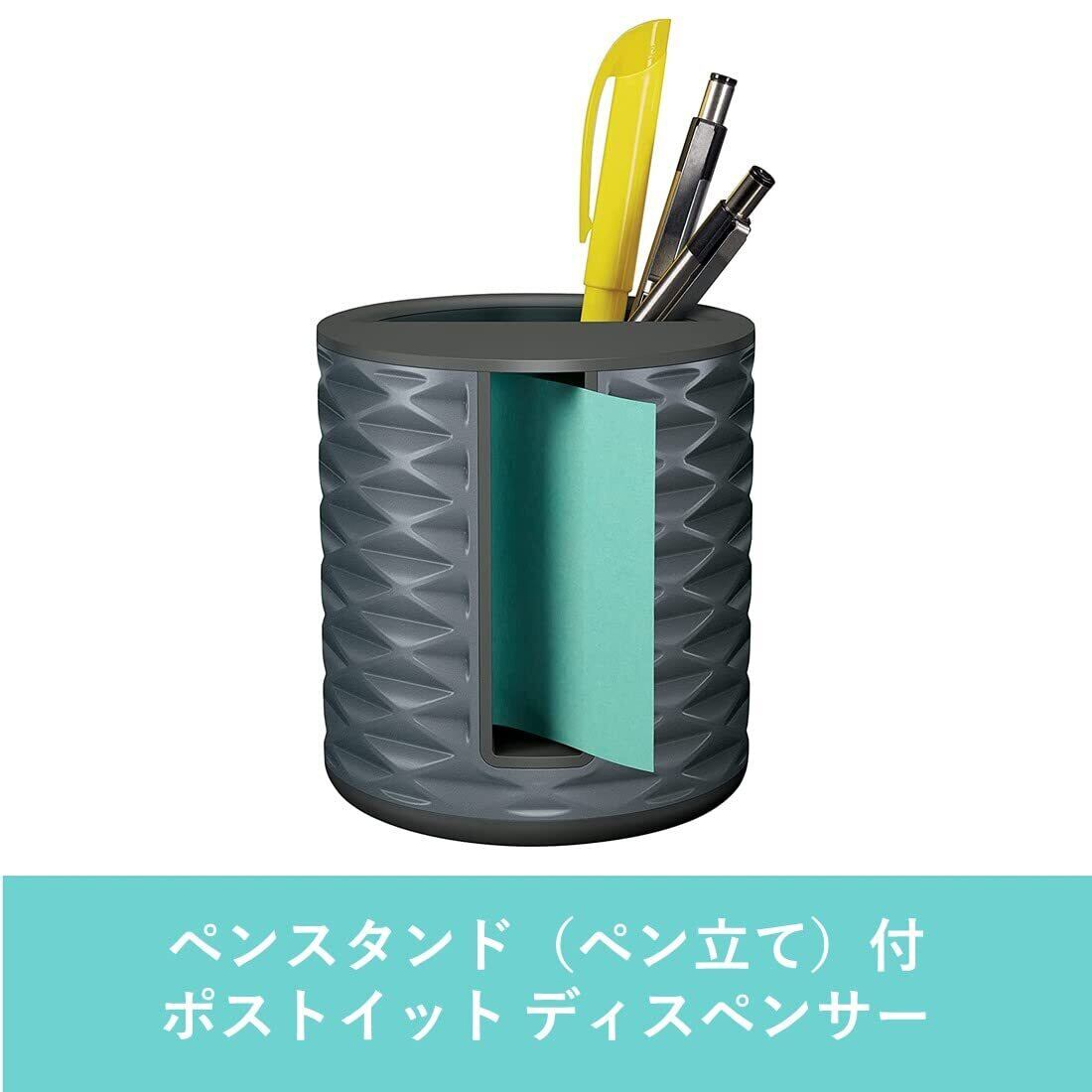 【日本初登場】落ち着きのある重厚感! ユニークで機能的なペン立て一体型のディスペンサーが日本発登場。存在感と話題性たっぷりのデザインで、ギフトにもぴったり。片手でサッと簡単に、一枚ずつ取り出せる、ポップアップ式。最後の一枚までムダなく使える。電話やパソコン操作中などの、メモやメッセージにとっても便利。ディスペンサーにセットして使うポストイット ノートだから、いつも机の定位置に。使いたい時に「粘着メモがない」なんて事もこれで解消!