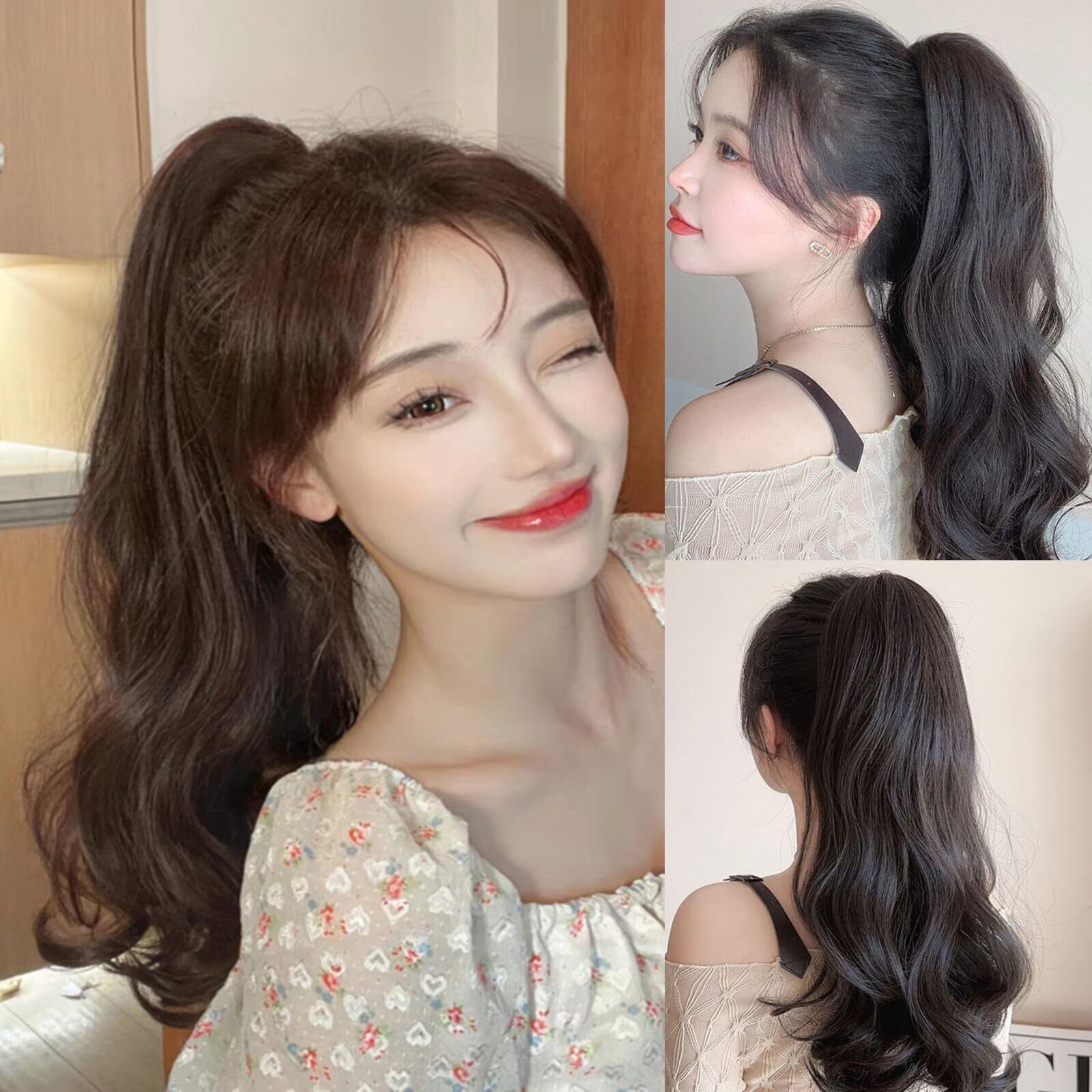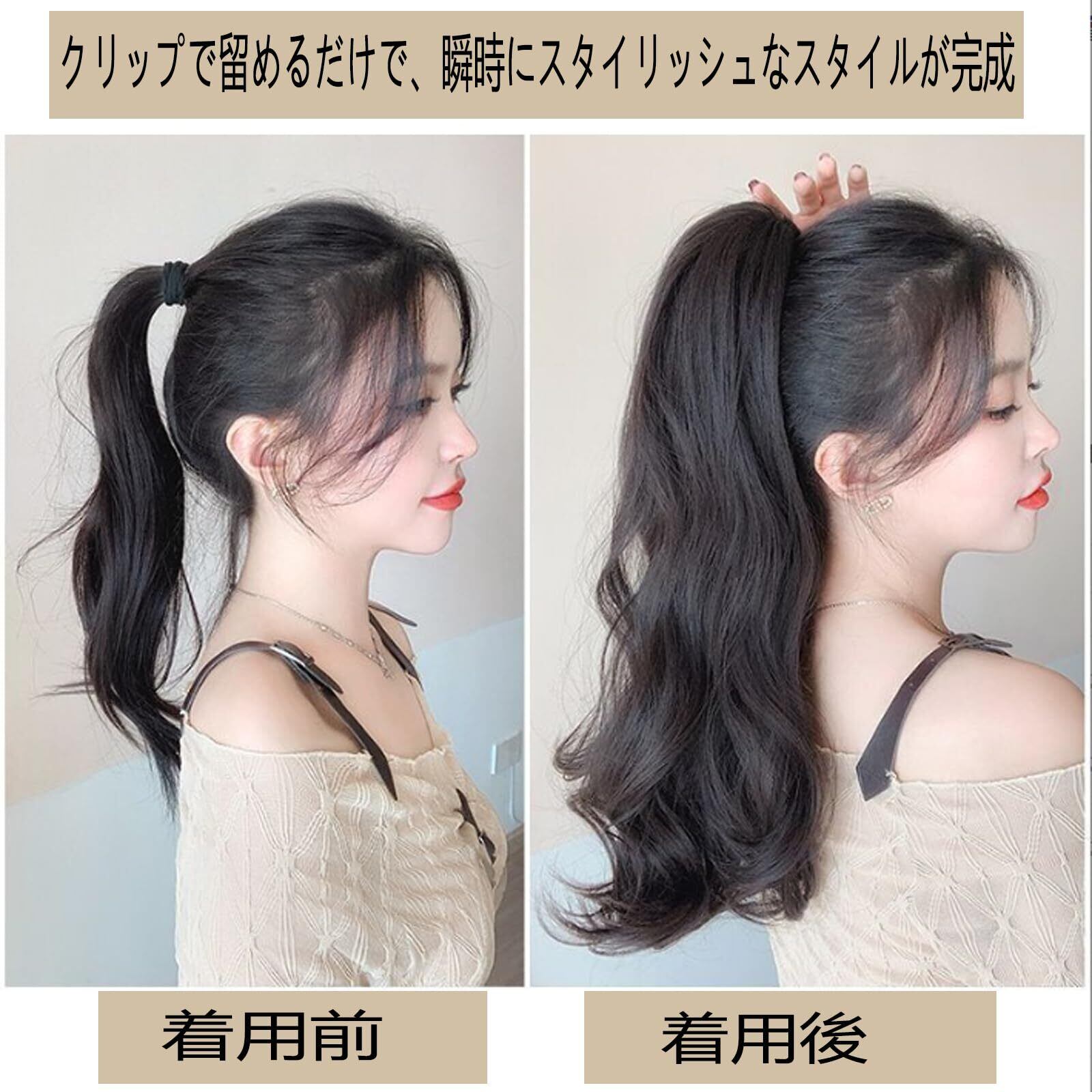 ふわふわ巻き髪ポニーテール:ボリューム感たっぷりの巻き髪ポニーテールのウィッグ。簡単イメチェンで、いつもと違う自分をお楽しみください。ふんわり巻き髪で大人かわいいを演出できます。