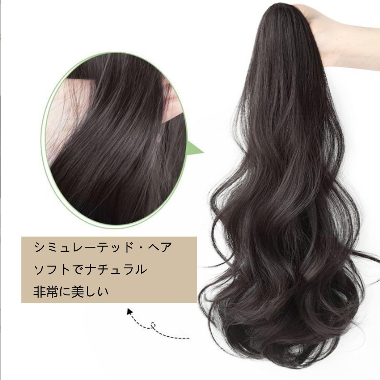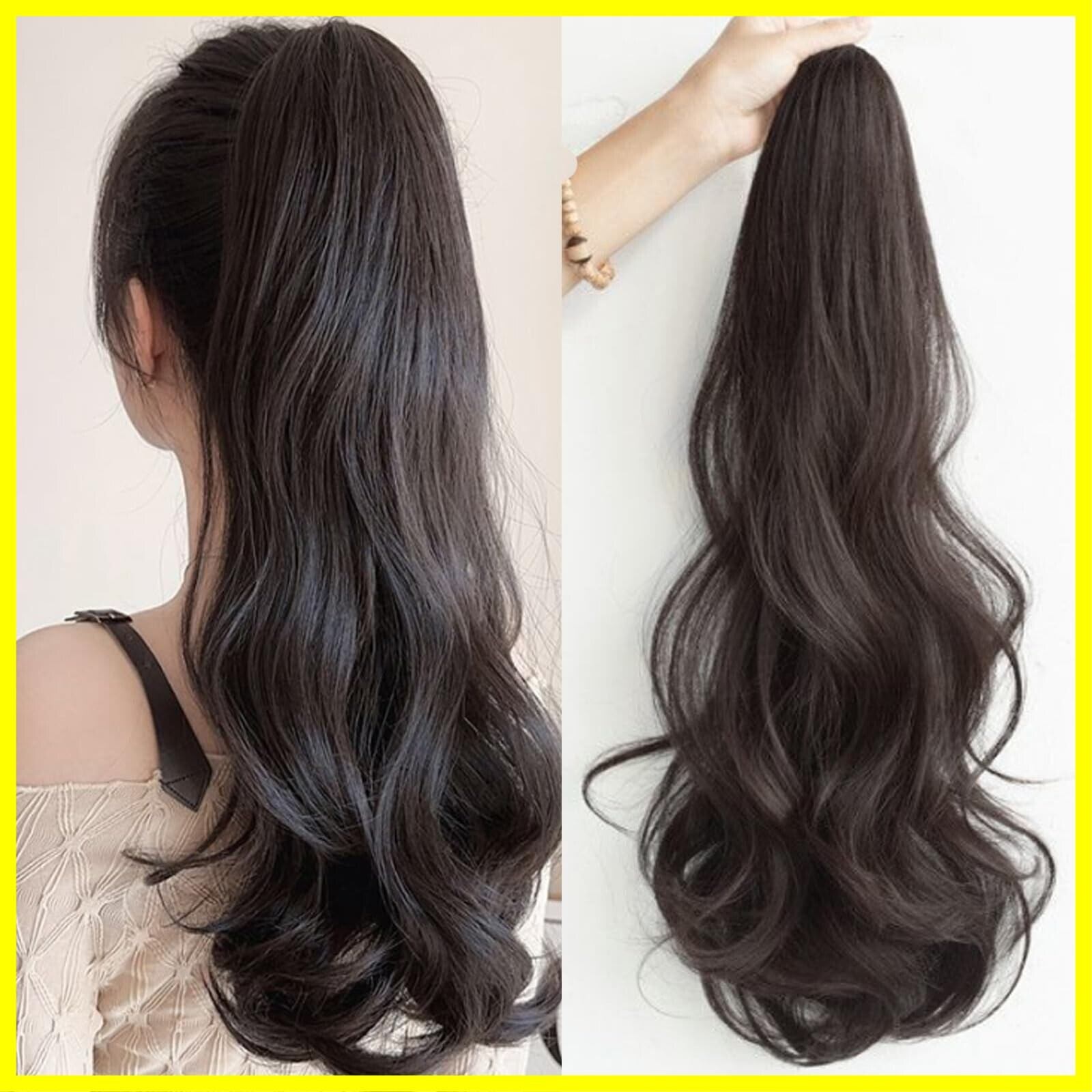HAPVITAL ポニーテール ポイントウィッグ カール ロング ポニーテールウィッグ ウィッグ 巻き髪 55cm 簡単クリップ式 エクステ ウィッグ ポニーテール ロング 自然 (ブラウンブラック)