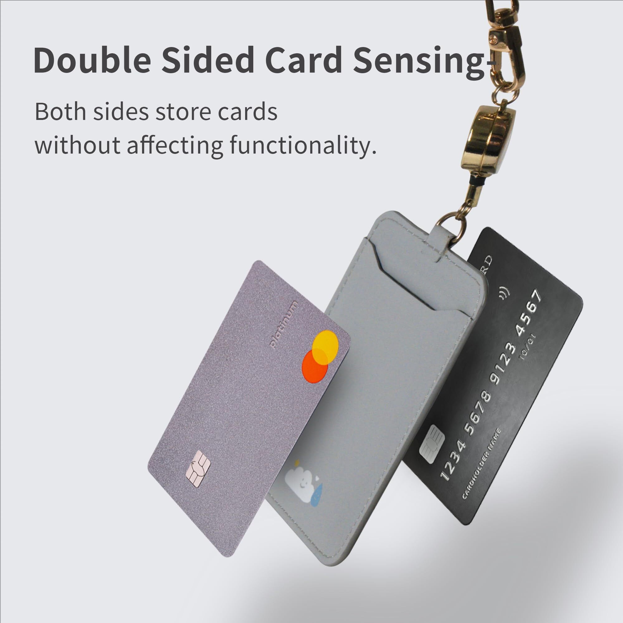 【両面対応】ICカードの電波干渉を防ぐ設計になっており、どちらの面のICカードをタッチしても読み取りエラーを防ぎます。※カードの信号強度や機器の感度設定には個体差があるため、一部のカードと機器の組み合わせでは反応しにくい場合があります。