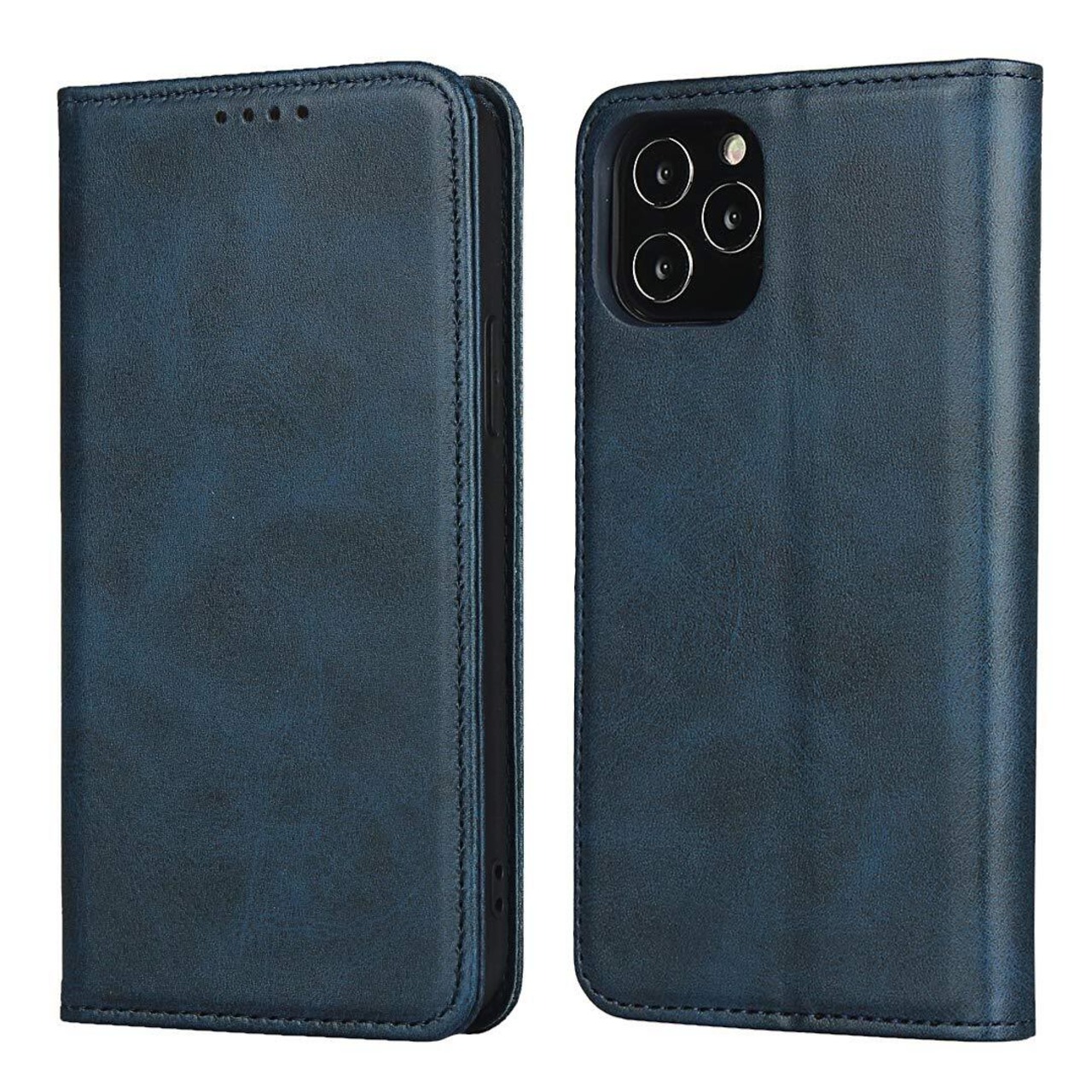 [iPhone12 ケース / iPhone12 pro ケース 手帳型 カバー アイフォン12 アイフォン12プロ ケース 内蔵マグネット 携帯カバー カード入れ シンプル スタンド機能 落ち着いた色 レトロ ネイビー]