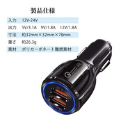 シガーソケット 車 充電ポート 車載充電器 usb カーチャージャー【Quick Charge 3.0対応・3.1A急速充電】iPhone用 Android用 iPad用 Galaxy用 カー用品 qc3.0 変換 2口