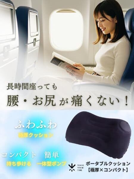 ポータブルクッション 【 極厚 × コンパクト 】 旅行 便利グッズ 飛行機 快適グッズ エアー 座布団 腰 お尻が痛くならない レジャーシート 一人用 厚手 キャンプ アウトドア ピクニック お出かけ スポーツ観戦 デスクワーク バス 軽量 厚さ12cm TOKYO TAKIBI TIME (ネイビー)