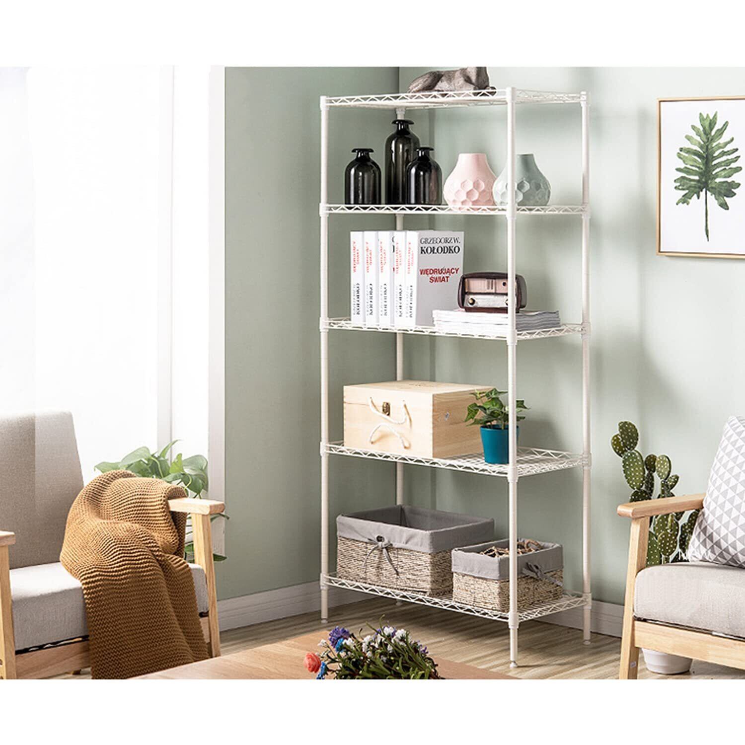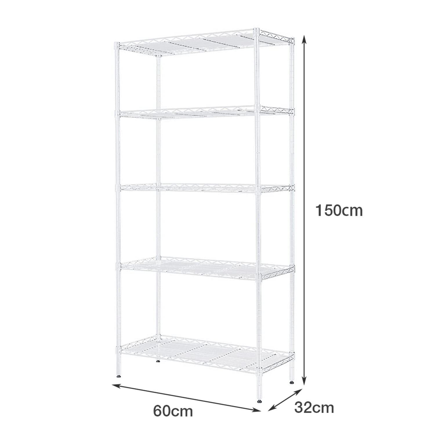 Fainyearn スチールラック レンジ台 キッチンラック 収納ラック キッチン 整理棚 本棚 シェルフ棚 メタル製 メタルラック 高さ調節 幅60cm×奥行32cm×高さ150cm (ホワイト)