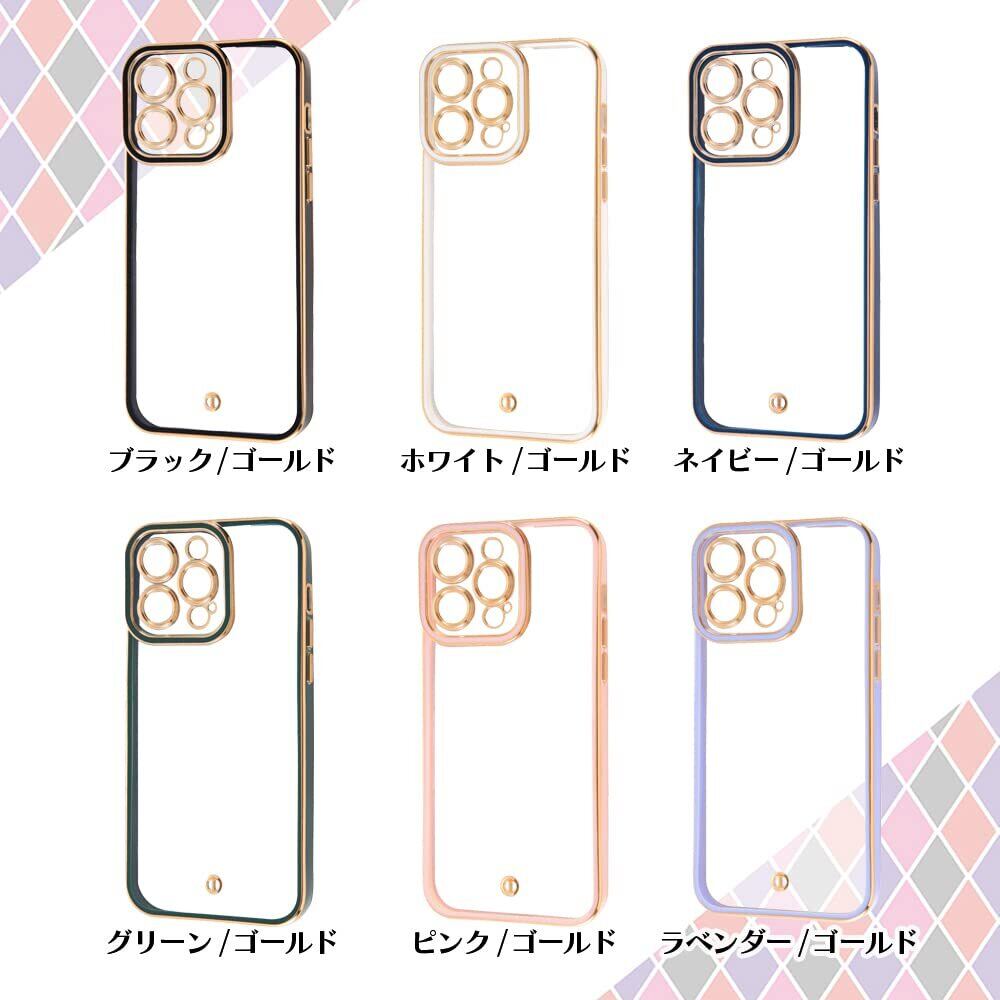 iPhone14 Pro Max ケース TPU ソフト ケース メタリック Cleour グリーン x ゴールド クリア 透明