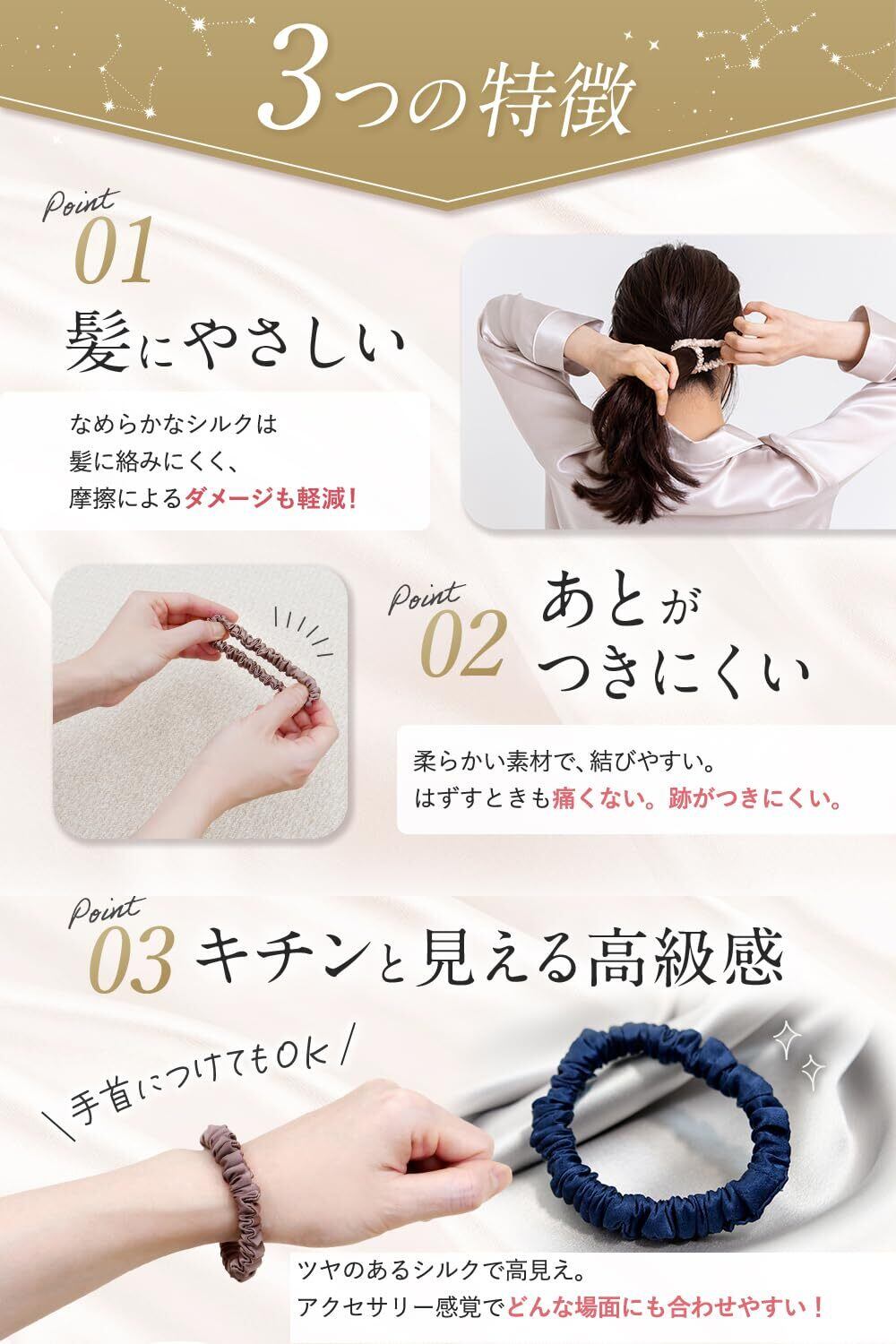 [COCOSILK]シルク シュシュ ヘアゴム 跡がつかない シルク100% 髪ゴム おしゃれ 大人 ヘアアクセサリー シルクヘアゴム