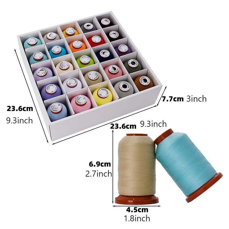 ツヤの無いポリエステル素材のスパン糸で、綿のような縫いやすさです。この25色のミシン糸の組み合わせには、よく使われる白、黒、グレー、ベージュのほか、かわいい黄色い、ピンク、緑、ブルー、オレンジ色などの色もあります。刺繍作品により多くのインスピレーションを与えることができます。
