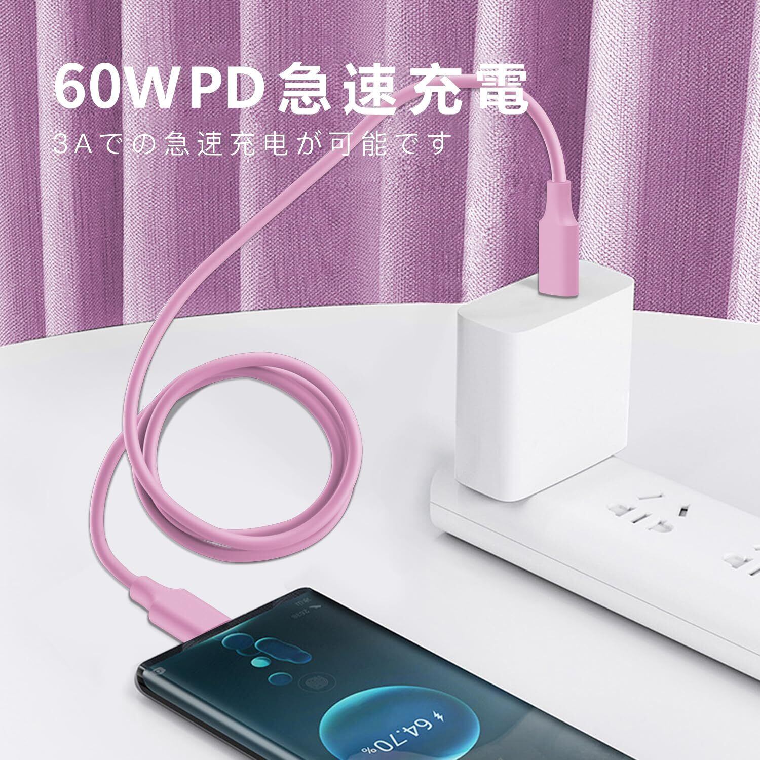【60W PD高速充電】USB C to USB C ケーブル 60W (20V 3A) で高速充電が可能です。 Type-C ケーブルは低抵抗の銅コアを使用しており、スマートフォン、タブレット、その他のデバイスをより速く充電します。
