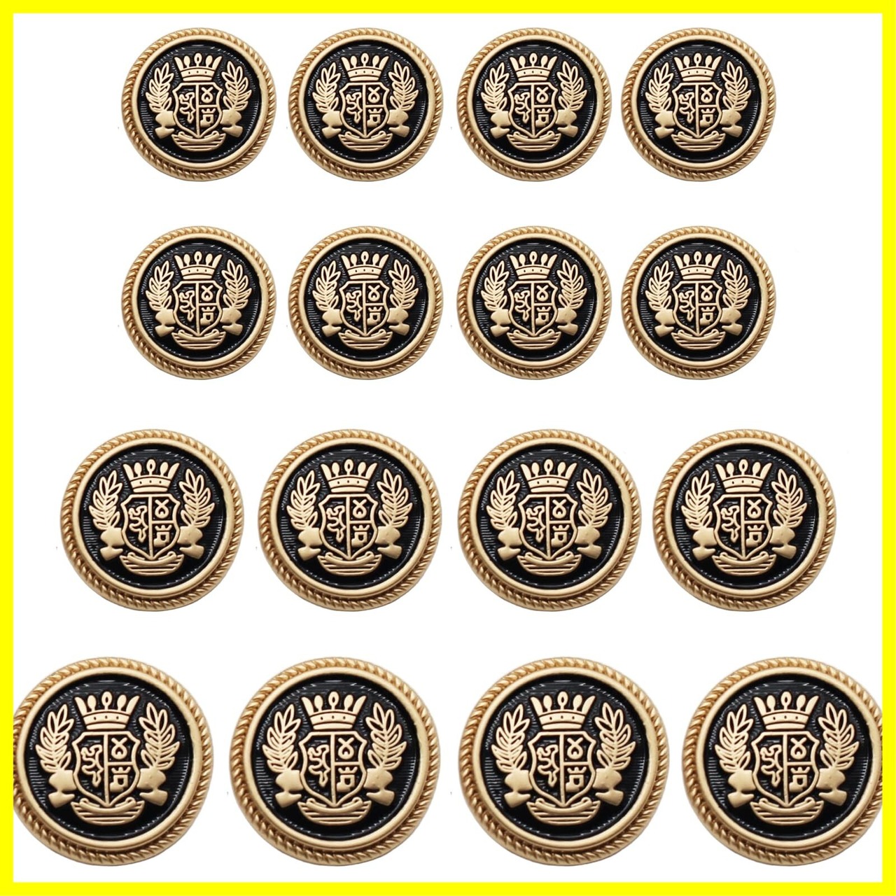 BLOOPIC ブレザー ボタン メタルボタン 16個セット 直径15mm/20mm/25mm 学ラン ブレザー交換用 おしゃれ アクセサリー DIY 手作り (サンドゴールド+ブラック)