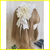 [森ガール ロリータ 髪飾りミニバラ蝶結び付き ヘアアクセサリー フリル レースフリル カチューシャ萌え系 お人形茶話会 パーティー コスプレ系 姫系 エンゼル mori lolita おしゃれリかわいい ヘッドドレス (ホワイトWhite)]