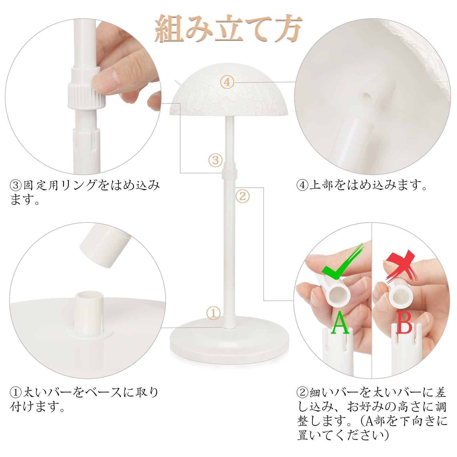 [Peacoco ウィッグスタンド 帽子スタンド 組み立て式 高さ調節可能 30-48cm 組立簡単 分解簡単 ウィッグ保管 ディスプレイ お手入れ ウィッグホルダー ウィッグ立て (アップグレード - ピンク)]