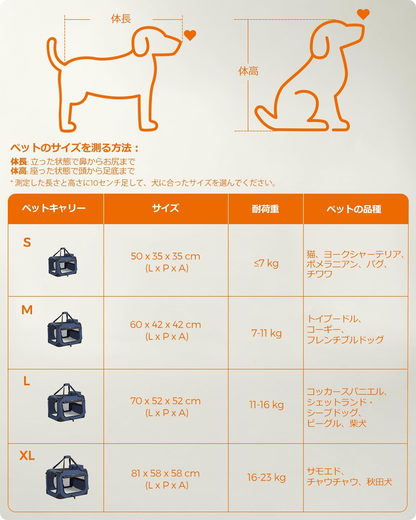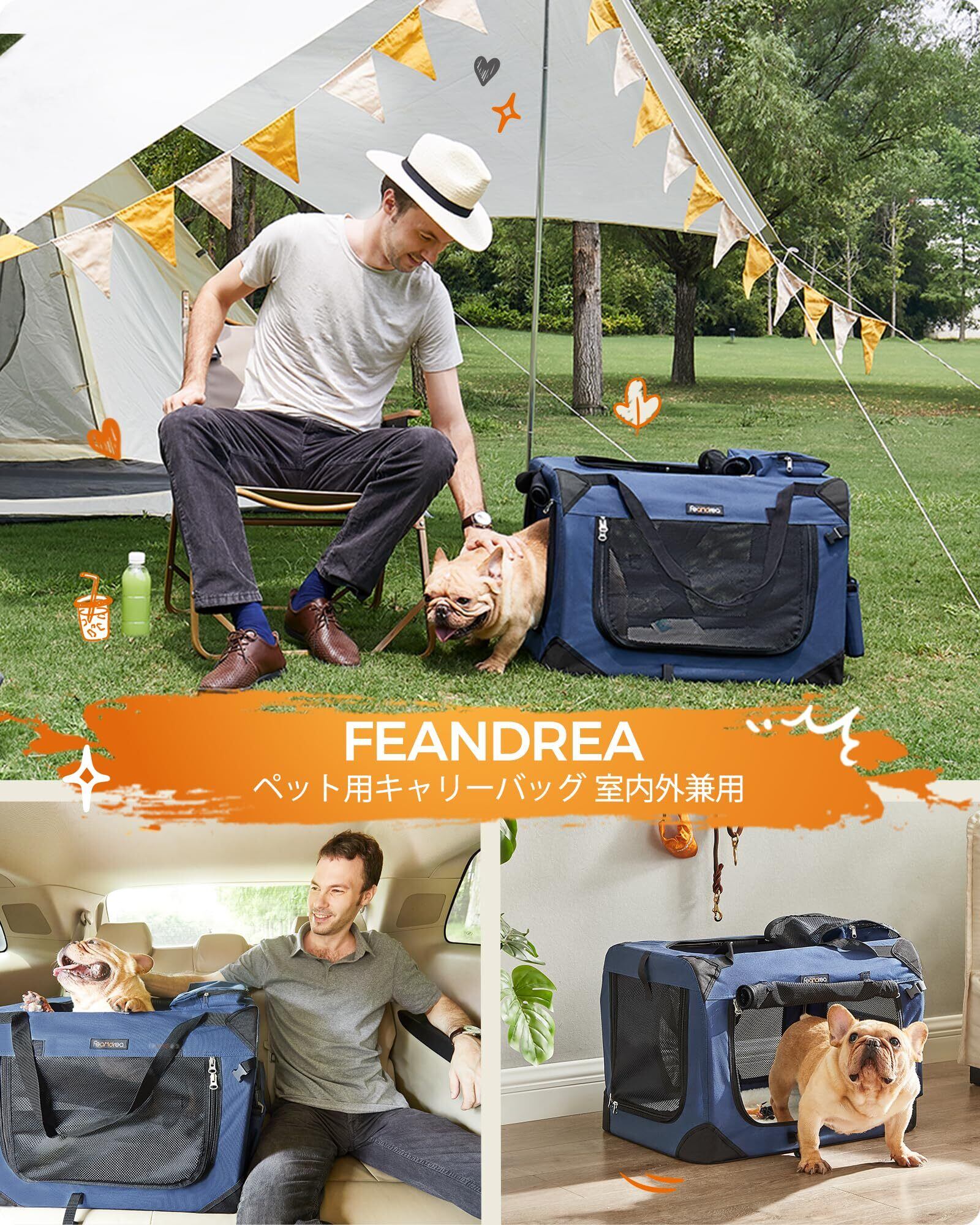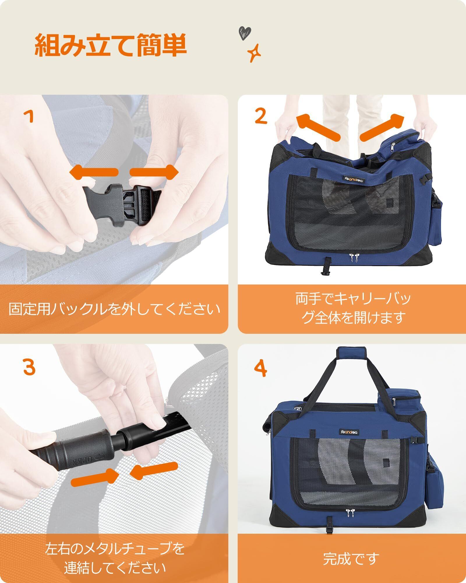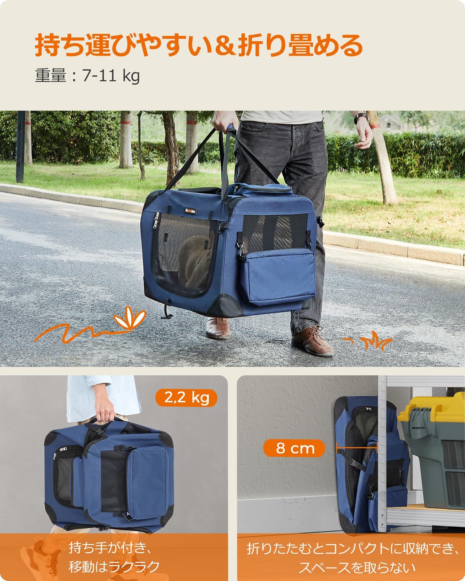 FEANDREA キャリーバッグ 中型犬 大型猫 ペットキャリー 省スペース 頑丈耐久 変形しない 室内用可 NPDC60Z