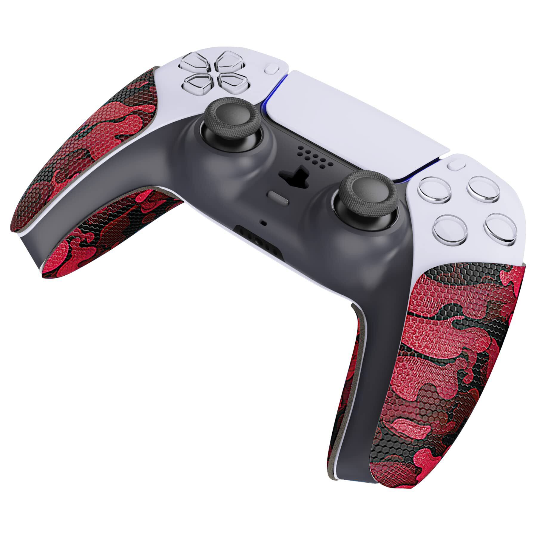 [PlayVital ps5コントローラーに対応用滑り止め汗吸収グリップステッカー、ps5コントローラーに対応するプロなテクスチャード加工のソフトラバーパッドハンドルグリップステッカー【ブラックレッドカモフラージュ】]