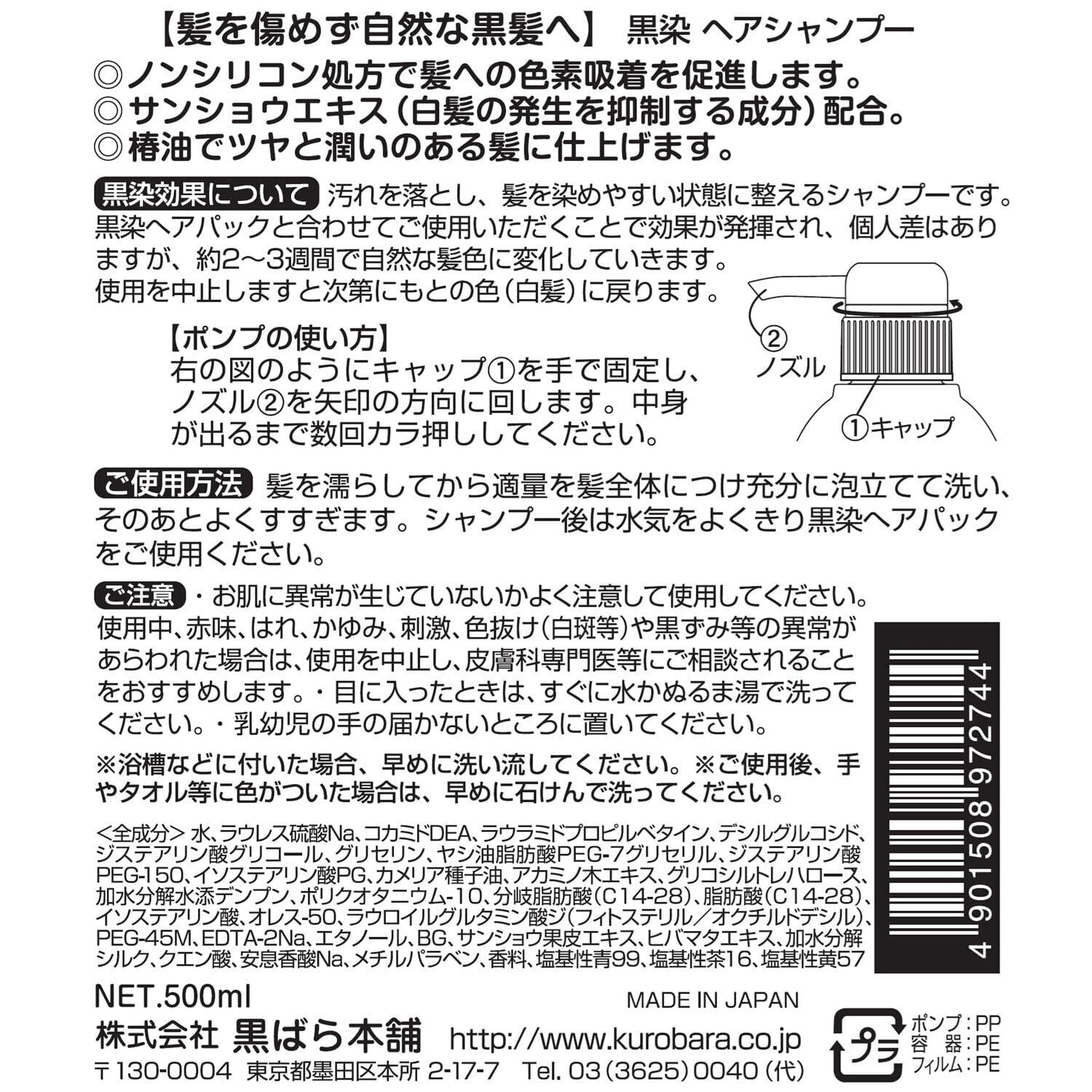 黒ばら本舗 黒染 ヘアシャンプー 500mL 白髪染め