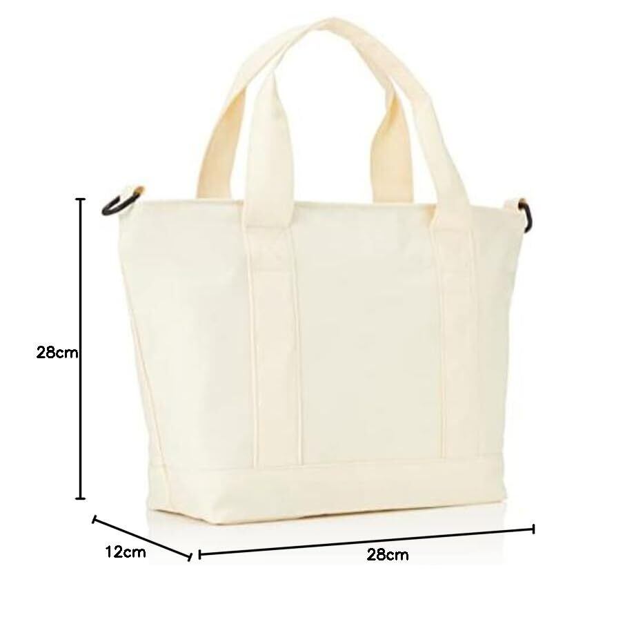 メインバッグとしてオススメなサイズの横型トートバッグ。取り外し可能なショルダーベルトが付いているので肩掛けにして使うこともできます。マチも広く、容量も約10Lと収納力も抜群です。 バッグ前面にはポケットが付いているので、小物収納に便利。内装にも2つのポケットがついているので、荷物を仕分けて収納することができます。
