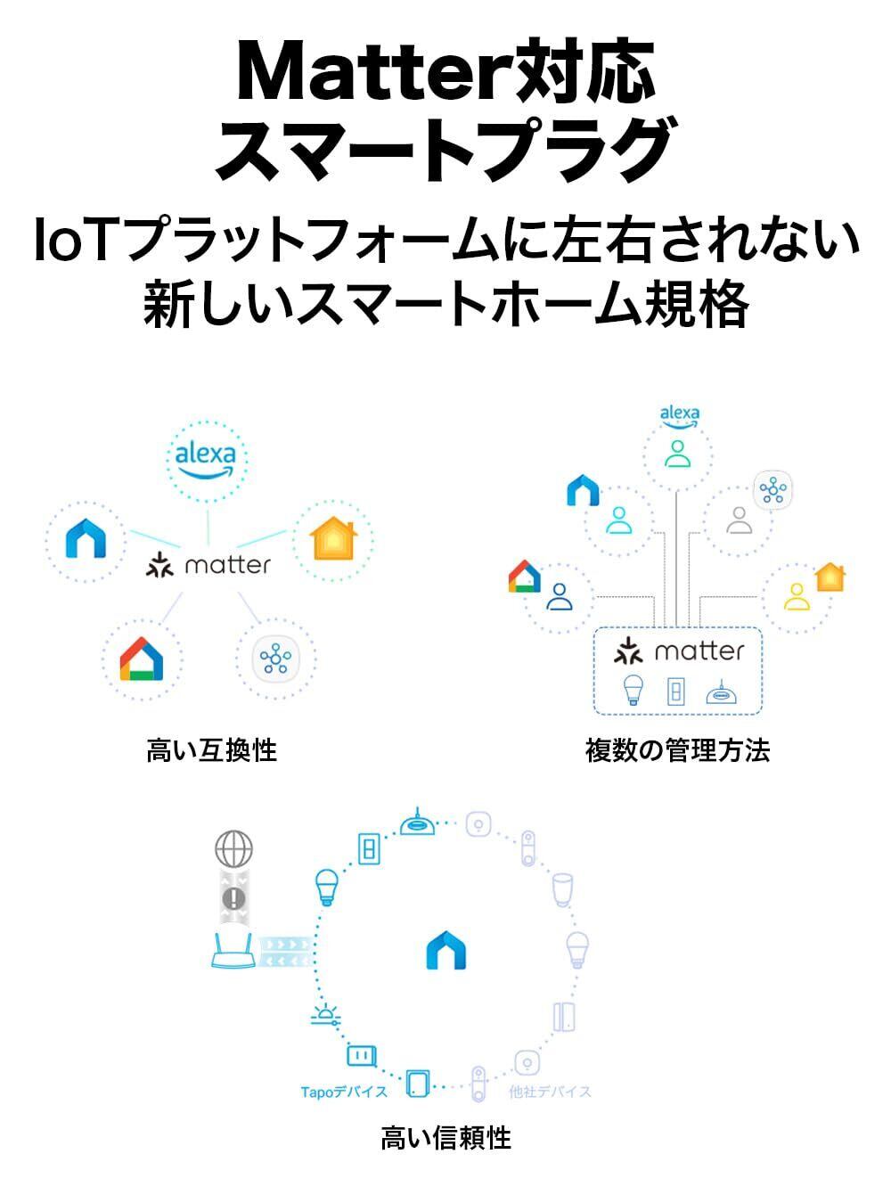 [特徴] Matter対応 スマートプラグの2個セットが登場。Apple Siri , Alexa, Google Assistantの音声コントロールに対応