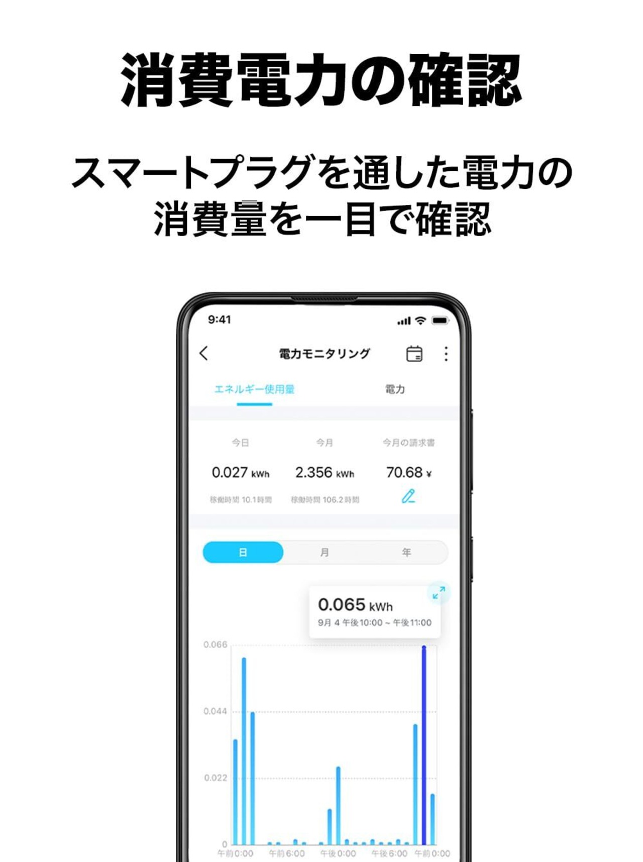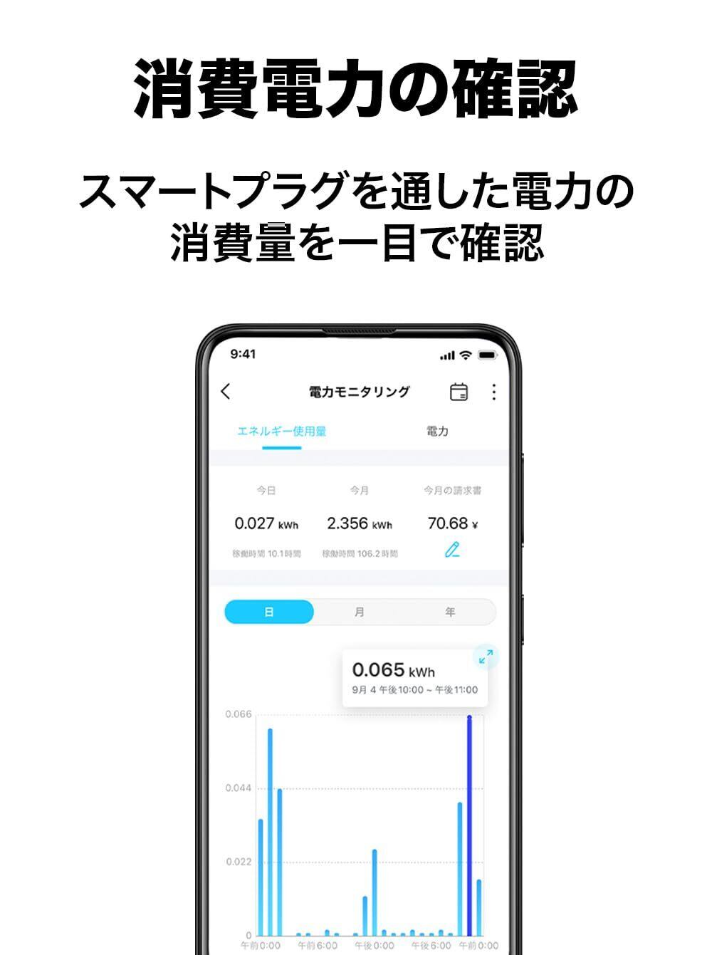 [消費電力モニタリング] プラグに挿した電気製品の電力使用状況を確認でき、電気料金の設定を行うと毎月の電気料金の目安を確認できます。