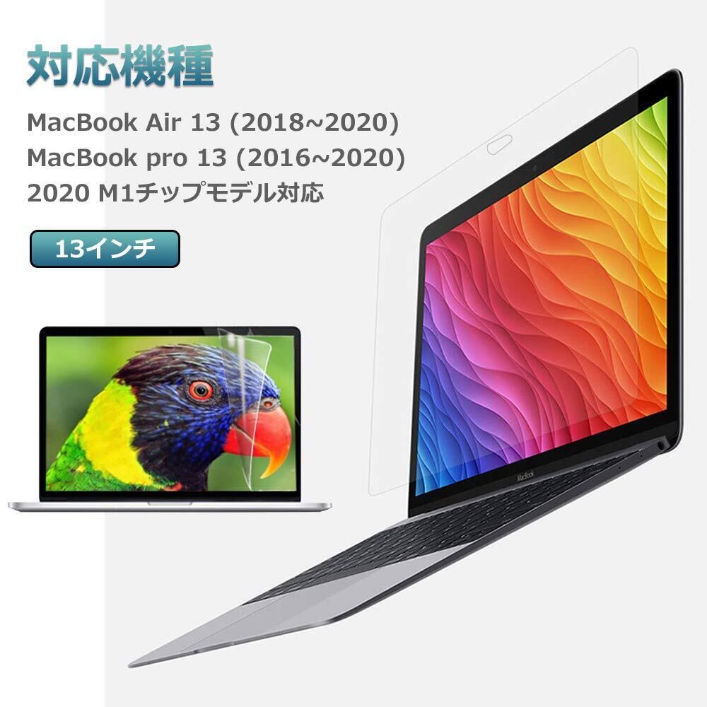 【対応機種】 ■MacbookAir 13 インチ 2018~ 2020 年モデル ( M1 チップ対応) ■MacbookPro 13 インチ 2016~ 2020 年モデル ( M1 チップ対応) 【高光沢】保護フィルム 表面の反射の屈折率に対し、違う屈折率の処理剤をコートすることで、画面フィルム 表面の屈折とコートの屈折でお互いの反射を打ち消しあい反射を抑えています。 【液晶保護】汚れに強い防汚コート処理で汚れが付きにくく、拭き取りやすくなります。傷、指紋、埃などからマックブックの画面をしっかりと保護します。ほこりが付着しにくい帯電防止仕様です。 【指紋防止】加工コーティングで画面に触れても指紋を残さず綺麗な状態を保ちます。 【透過率98%以上】極薄130μで液晶画面に違和感の無い装着感を実現しています。 【簡単貼り付け】何度でも剥がせる、自己吸着タイプで画面にぴったり張り付き、簡単に貼り付けができます。
