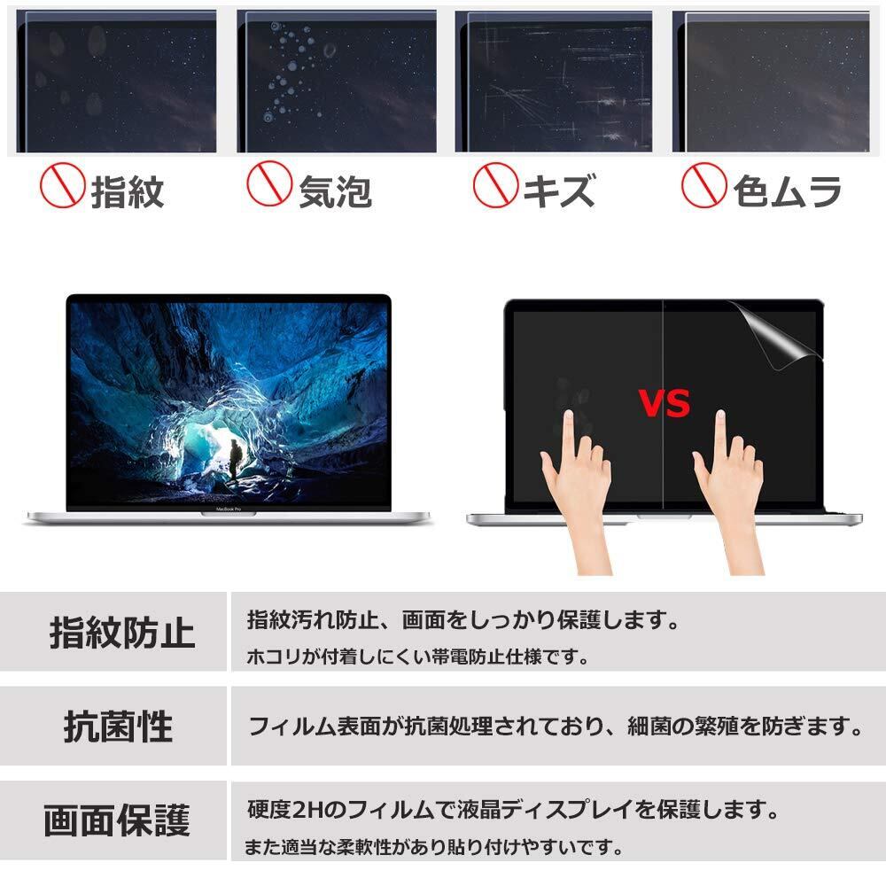 【液晶保護】汚れに強い防汚コート処理で液晶画面に汚れが付きにくく、拭き取りやすくなります。傷、指紋、埃などからマックブックの画面をしっかりと画面保護します。ほこりが付着しにくい帯電防止仕様です。
