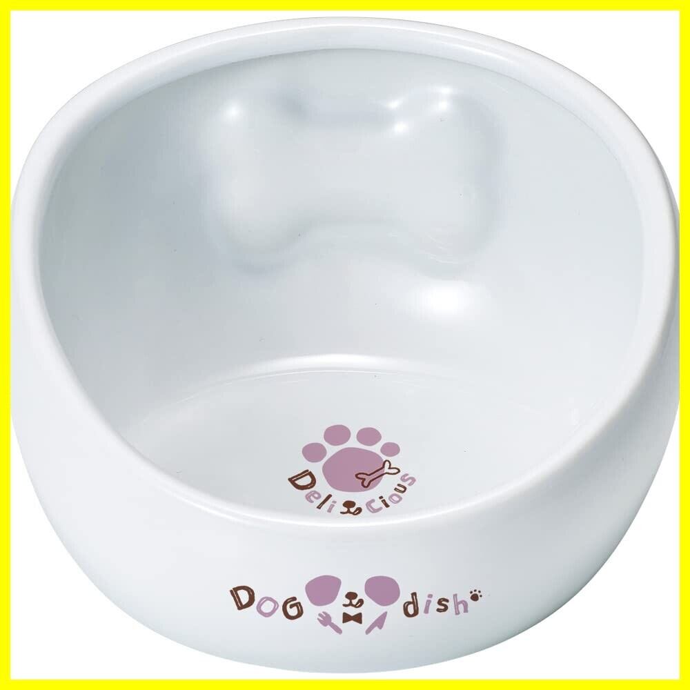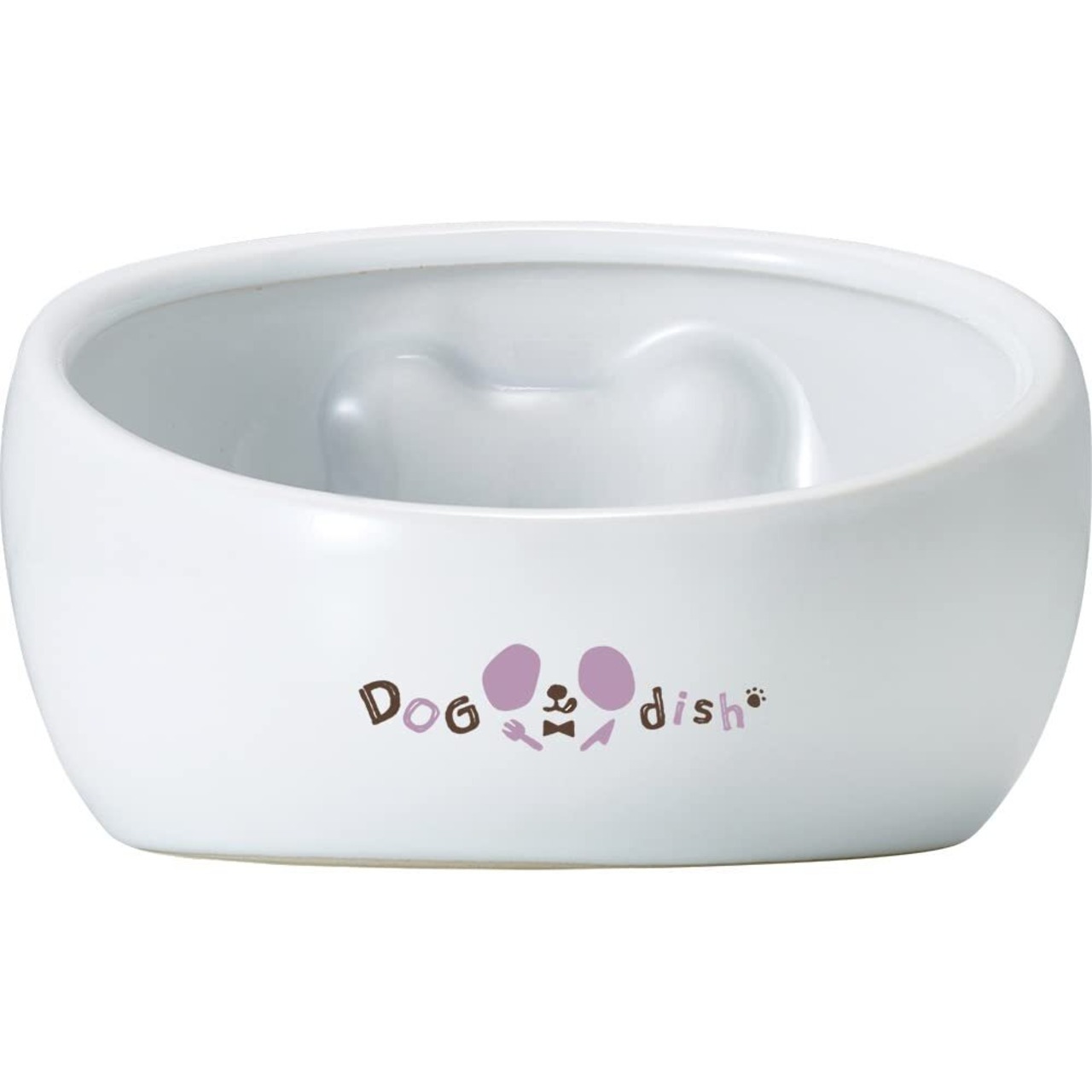 2つの返し構造で食べる時にこぼれにくい形状の犬用陶製食器です。外側の骨型の凹みで食器が持ちやすくなっています。