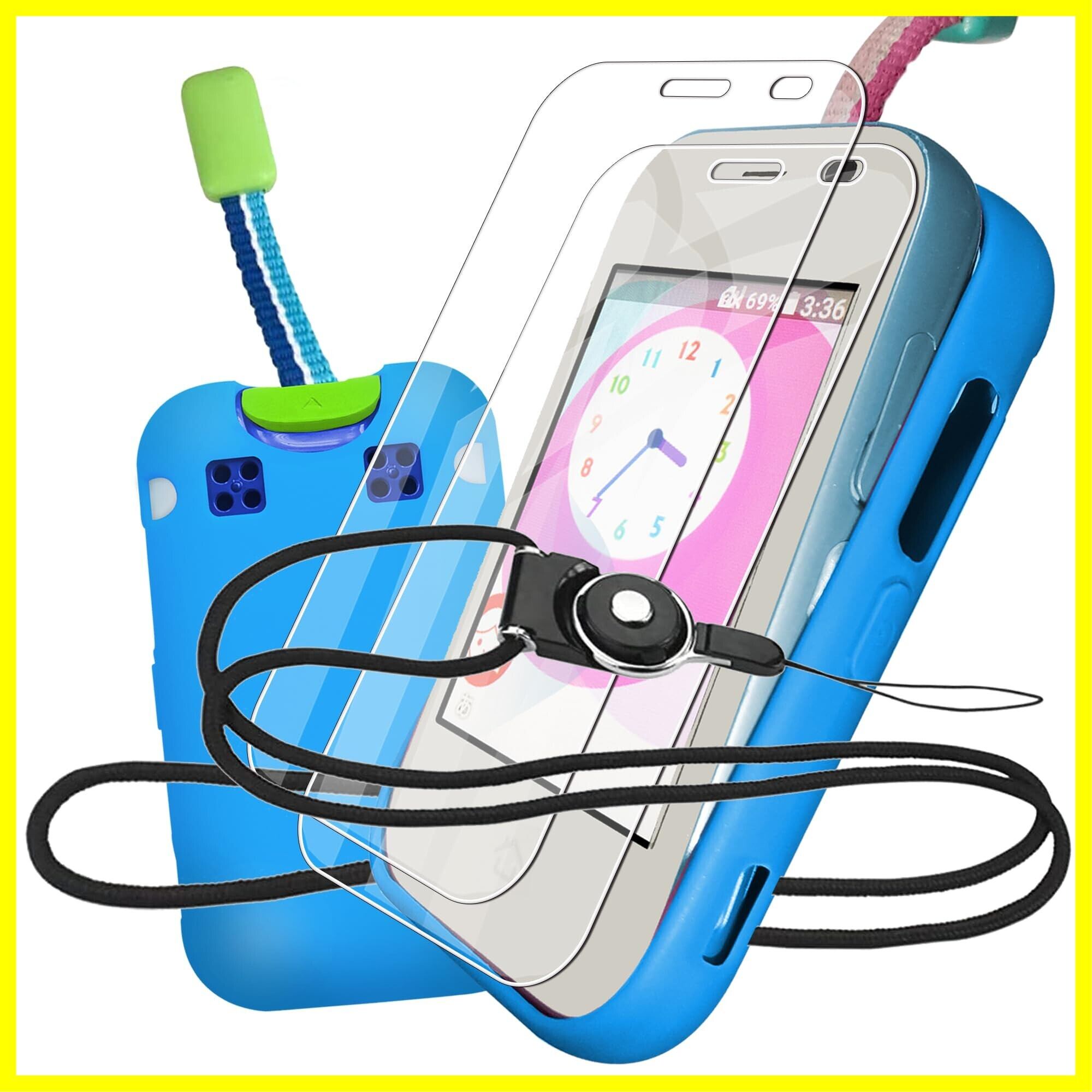 Nutmeg【2+1】mamorino 5 用の ガラスフイルム マモリーノ5 用の ケース ブルー 保護カバー 耐衝撃 mamorino5 用の フイルム シリコンケース 子供用 指紋防止 気泡防止 (ブルー)