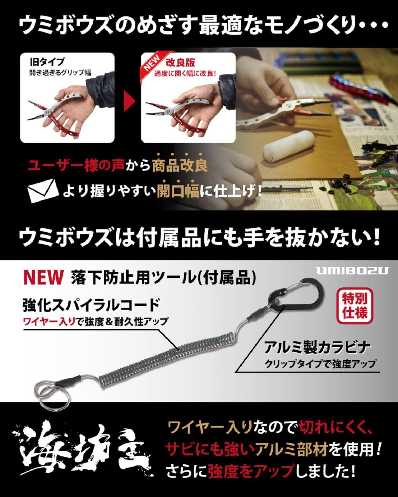 Umibozu(ウミボウズ) フィッシングプライヤー 日本墨絵モデル 国内 錆びない ロック機能付き 多機能 針はずし フックはずし ラインカッター 安全ロープ付き ステンレス 高性能 超軽量 【 火龍 】