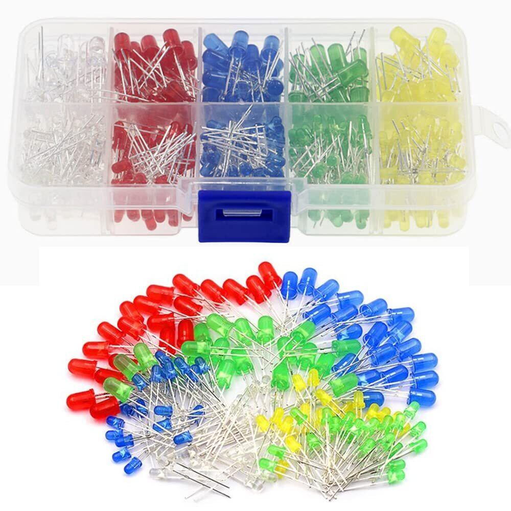 【カラー】LEDダイオードキット:各サイズ5色。3mm:20pcs黄、20pcs緑、20pcs青、20pcs赤、20pcs白; 5mm:20pcs黄、20pcs緑、20pcs青、20pcs赤、20pcs白。計200個入。