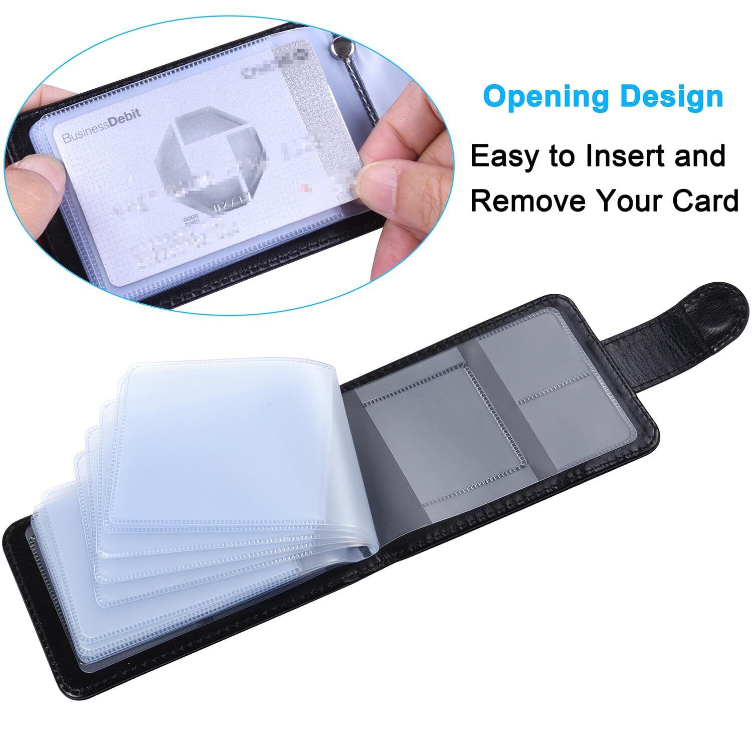 [Wisdompro] クレジットカードケース スキミング防止 カードファイル 透明 資格証/保険証/免許証/キャッシュカードケース ポイントカード入れ PUレザー 横型 20枚収納 ブラック