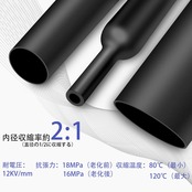 材質:ポリオレフィン(高防水性 高絶縁性 高難燃性。非毒性および柔軟性に優れています。)。抗張力:18MPa(老化前)、16MPa(老化後)。耐電圧:12KV/mm
