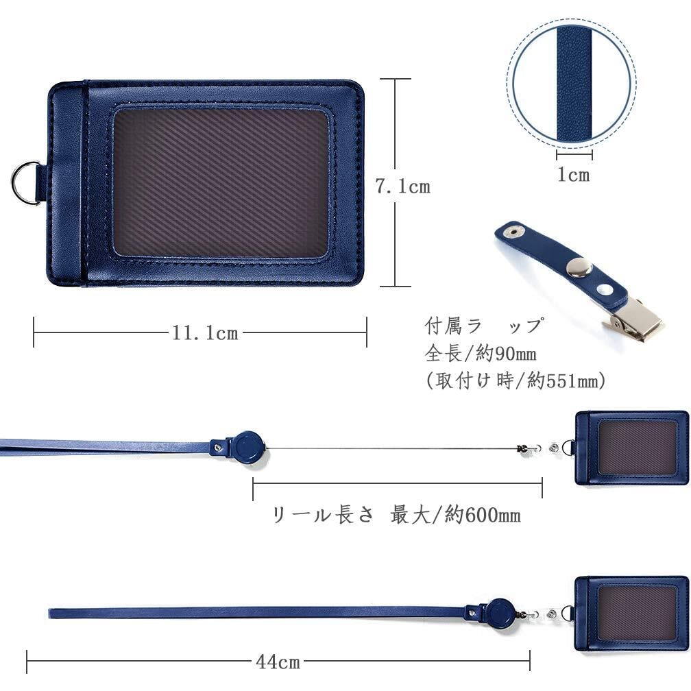 [Viaky] ネームホルダー id カードホルダー レザー 縦型パスケース 伸縮リール式 ネックストラップ バンドクリップ 付き ユニセックス ポケット三つ 社員証 名札 定期入れ ケース
