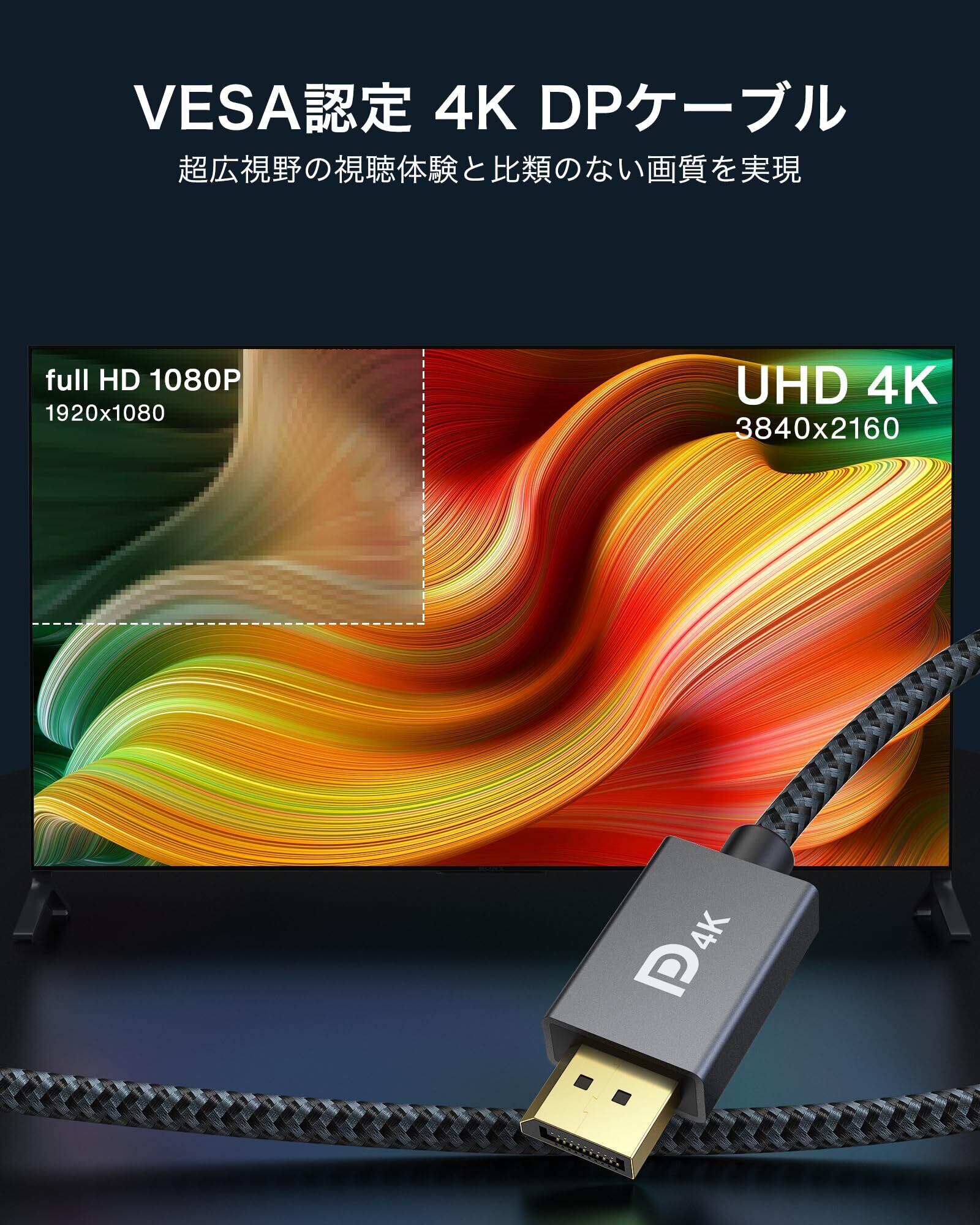 DPケーブル iVANKY 【VESA認証ゲーミングDisplayport ケーブル 1.2/4K/2M】4K@60Hz/ 2K@165Hz/ 2K@144Hz ディスプレイポート ケーブル DP to DP 最大21.6Gbps ハイスピード PC/ASUS/Dell/Acer ノートパソコン/テレビ対応 ディスプレイポートディスプレイケーブ ル モニターケーブ ル