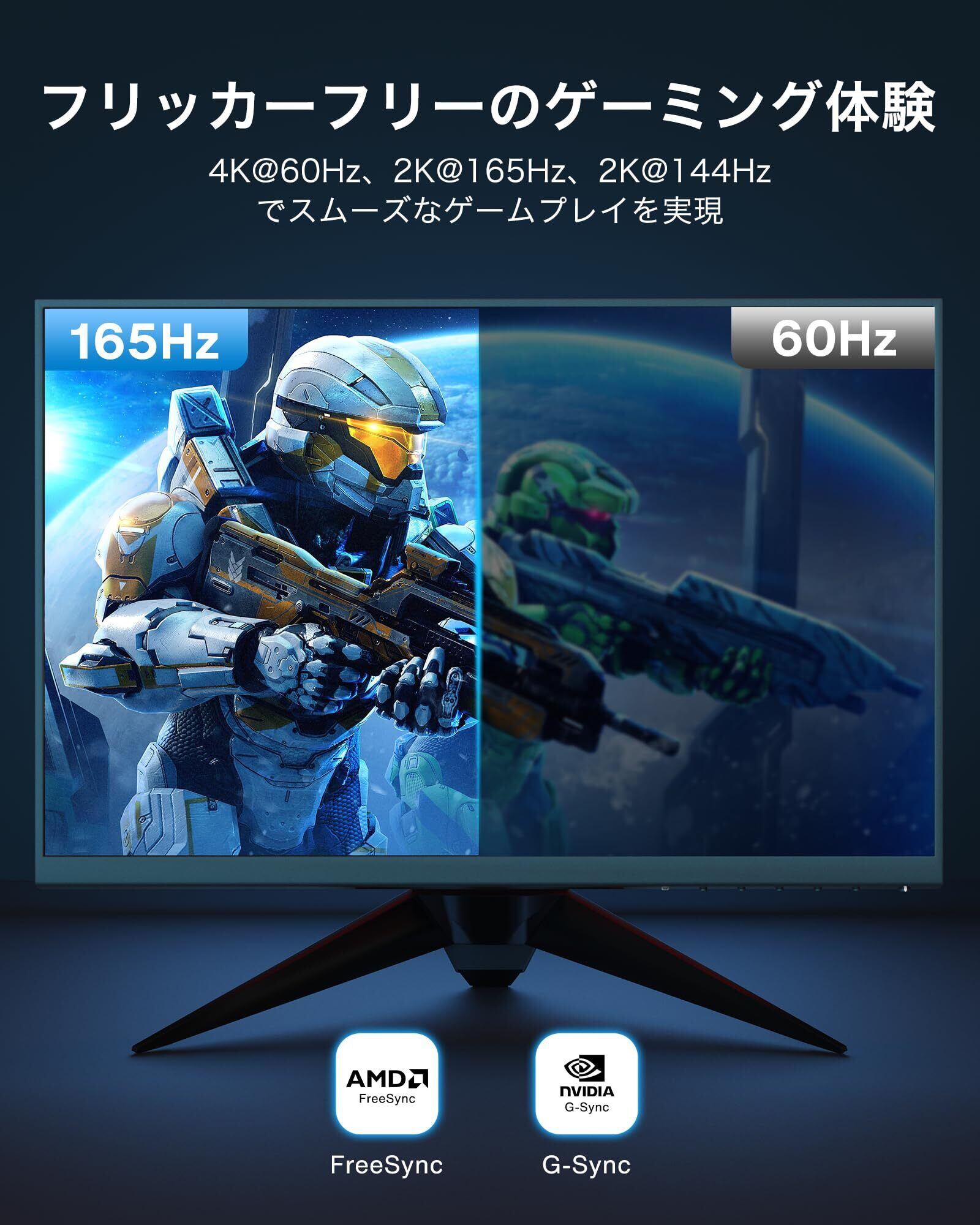 ◆ ご注意:144Hz(以上)の出力、4K60P、HDRおよび上記の機能は接続機器の両方が対応することが必要です。●表示可能な解像度とリフレッシュレートはご使用された機器の規格に準じます。●お使いの機器のコネクタ形状と合っているか必ずご確認の上ご購入をお願いします。