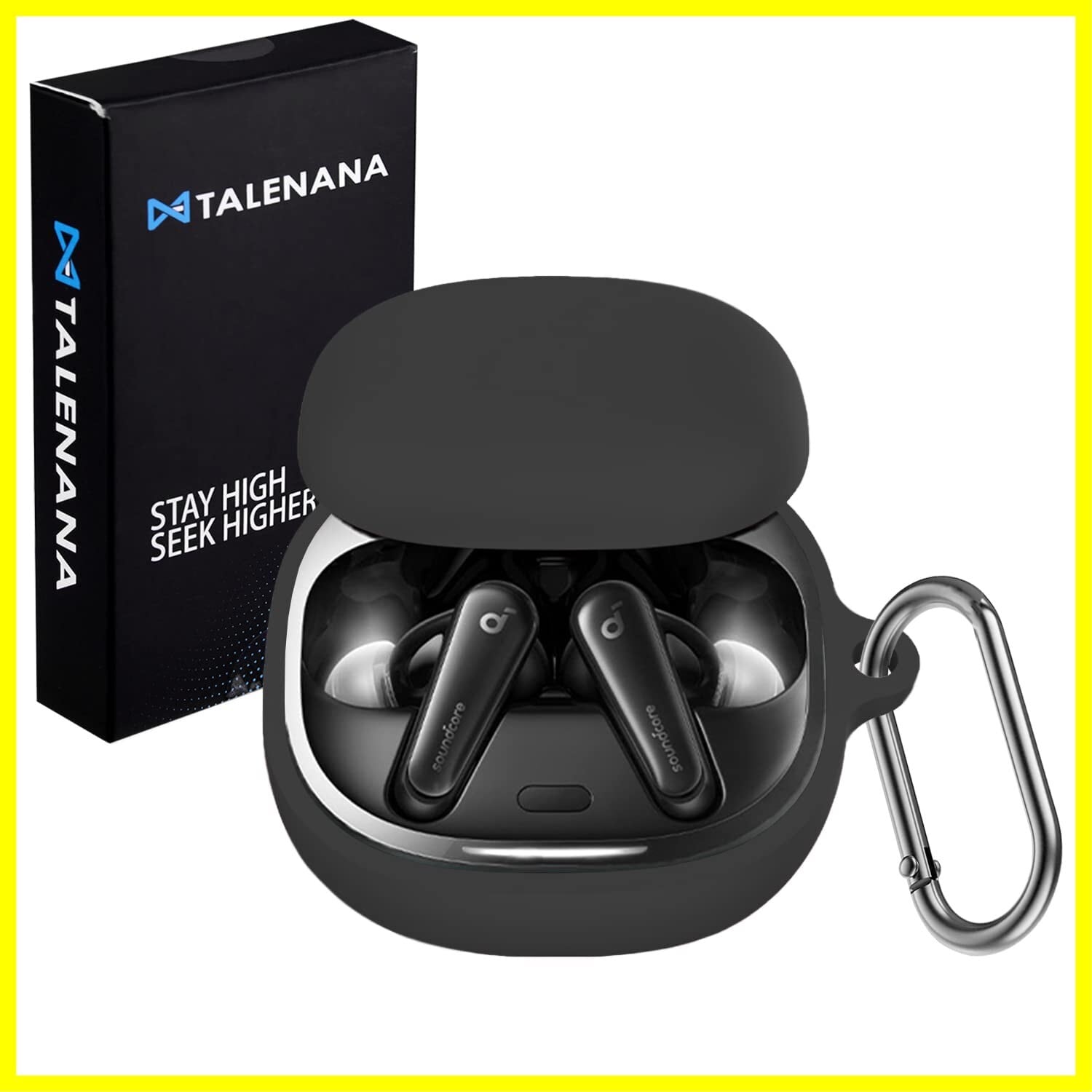 TALENANA for Anker Soundcore Liberty 4ケース シリコーン 保護カバー 耐衝撃 防水 防塵 キズ防止 装着充電可能 全面保護ケース イヤホン カラビナ付き Anker Soundcore Liberty 4 対応(ブラック)
