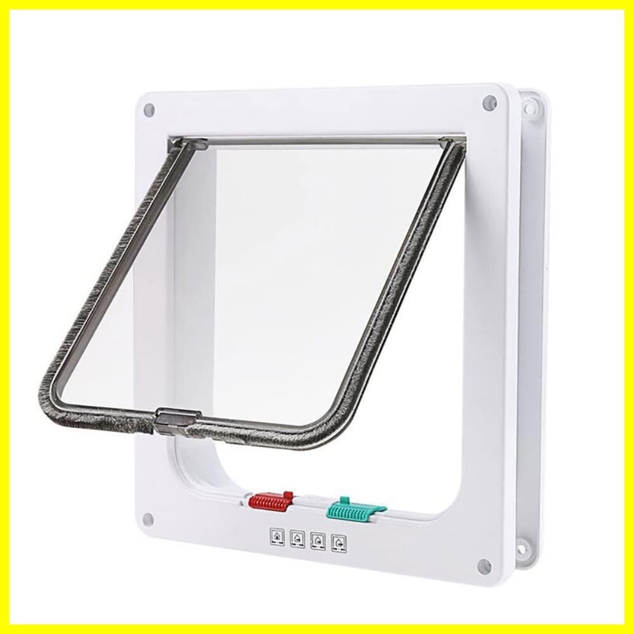 取り付け簡単!愛犬専用のペットドア ペット用扉 犬猫出入り口 ロック、フリー、出、入の4種切替 自由自在 壁の厚みに合わせてセットできる 犬猫の出入り口に最適 猫犬用 小型犬用 ペット用品 日本語取扱説明書付き 色:ホワイト