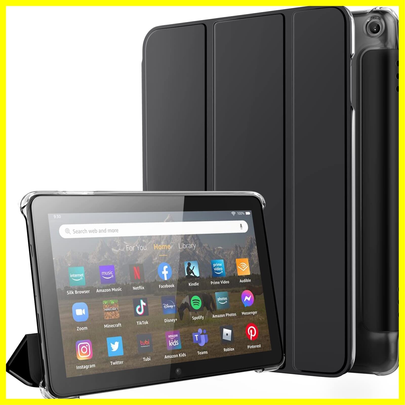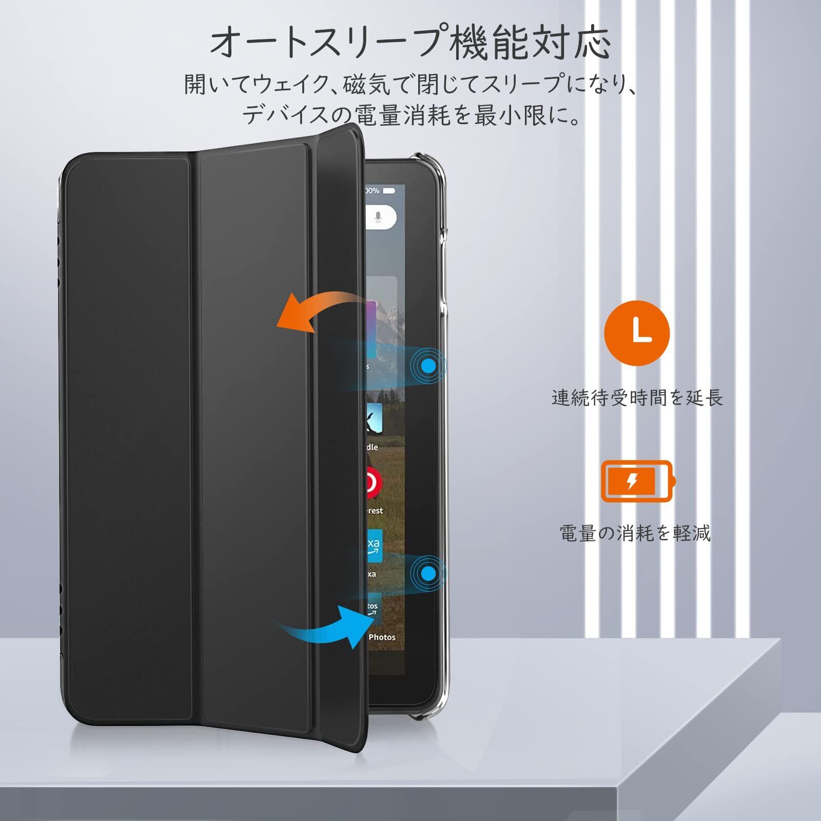 fire hd 8 ケース 2024/2022/2020 第12世代/第10世代 TiMOVO Fire HD 8/Fire HD 8 Plus カバー スタンドケース タブレット保護ケース オートスリープ機能 耐衝撃 傷つき防止 軽量 半透明 PUレーザー kindle fire hd 8 ケース fire hd 8 plus カバー ブラック