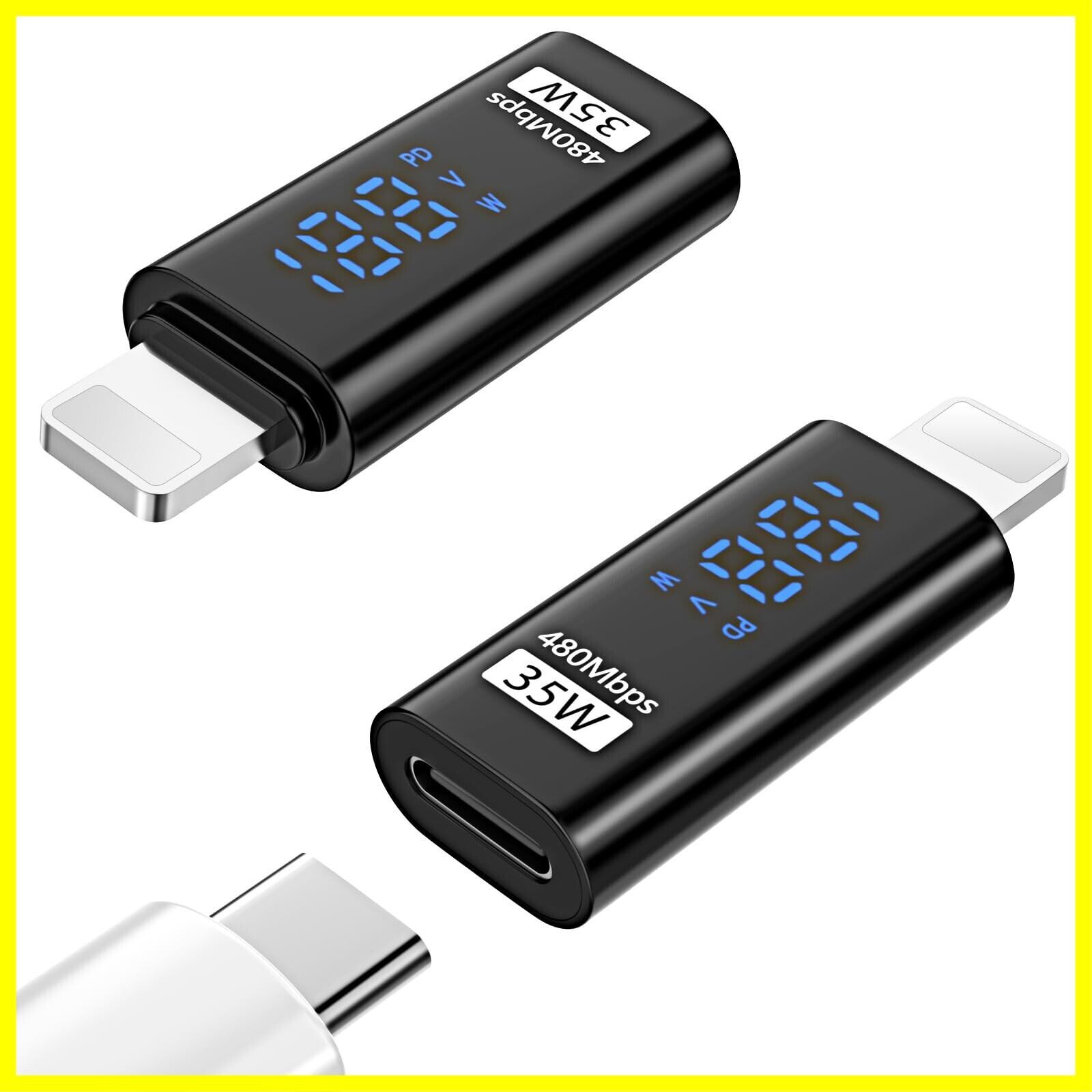 MoKo Type C to ライトニング 変換アダプタ 2枚セット 出力スクリーン表示 TypeCからライトニング変換用 アダプター 35W PD充電対応 480Mbpsデータ転送 USB-C iPhone 変換コネクタ タイプCからiOS変換コネクタ iPhone14/13/12/11ProMax/iPad/iPodなどライトニングコネクタ搭載のアップル端末に対応 Black