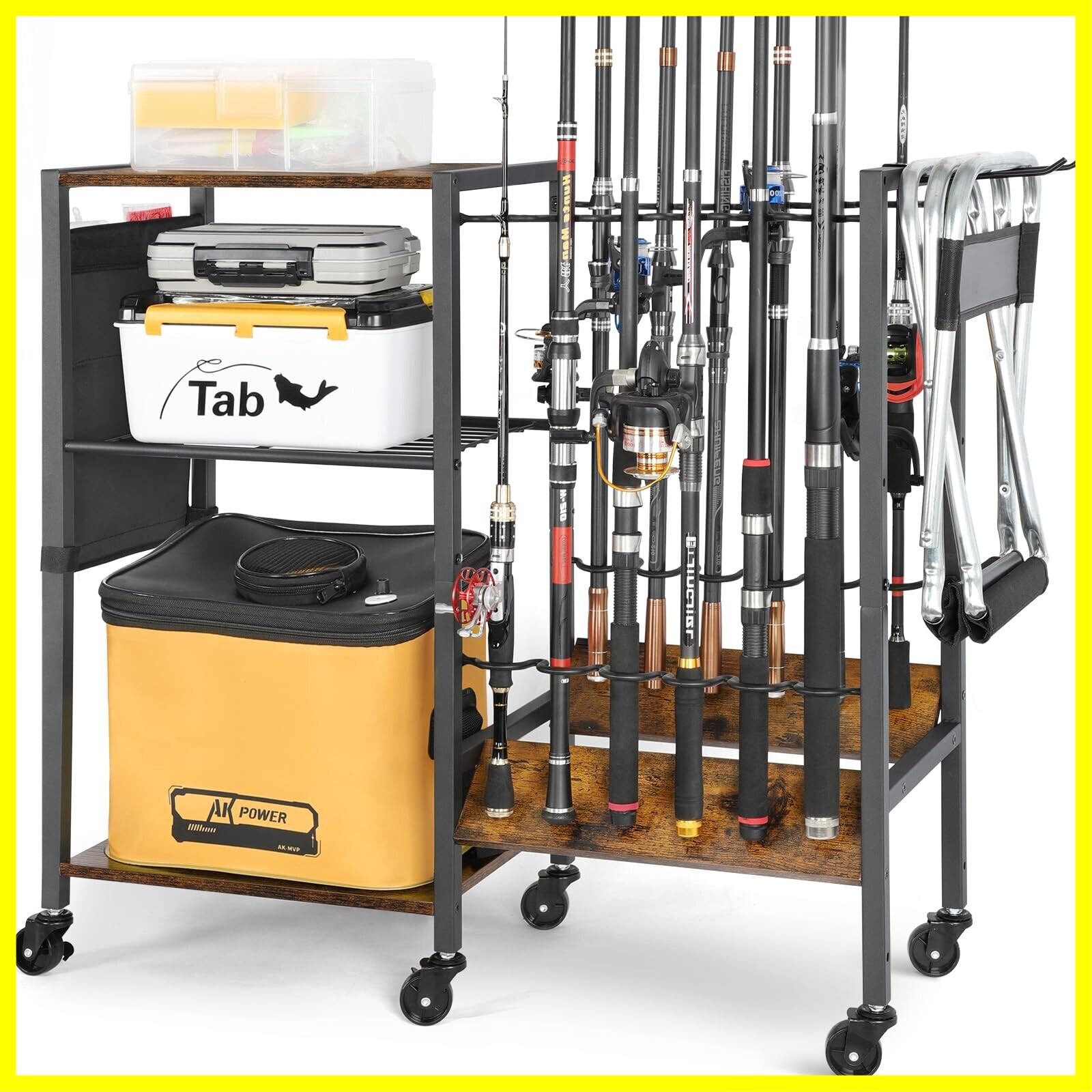 【男性への完璧な釣りギフト】このキャスター付きの床釣り竿ラックは、どんなスタイルのホームデコにも最適です。ガレージや物置、または他の屋内外の収納スペースで釣り竿や釣りアクセサリーを整理できます。釣り愛好者に最適で、シンプルで実用的な、特別な日に男性、女性、父親、夫、彼氏への最高の釣りギフトです!