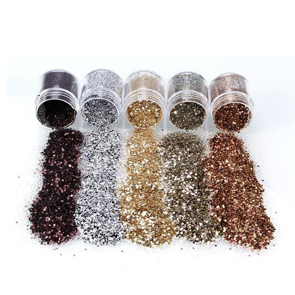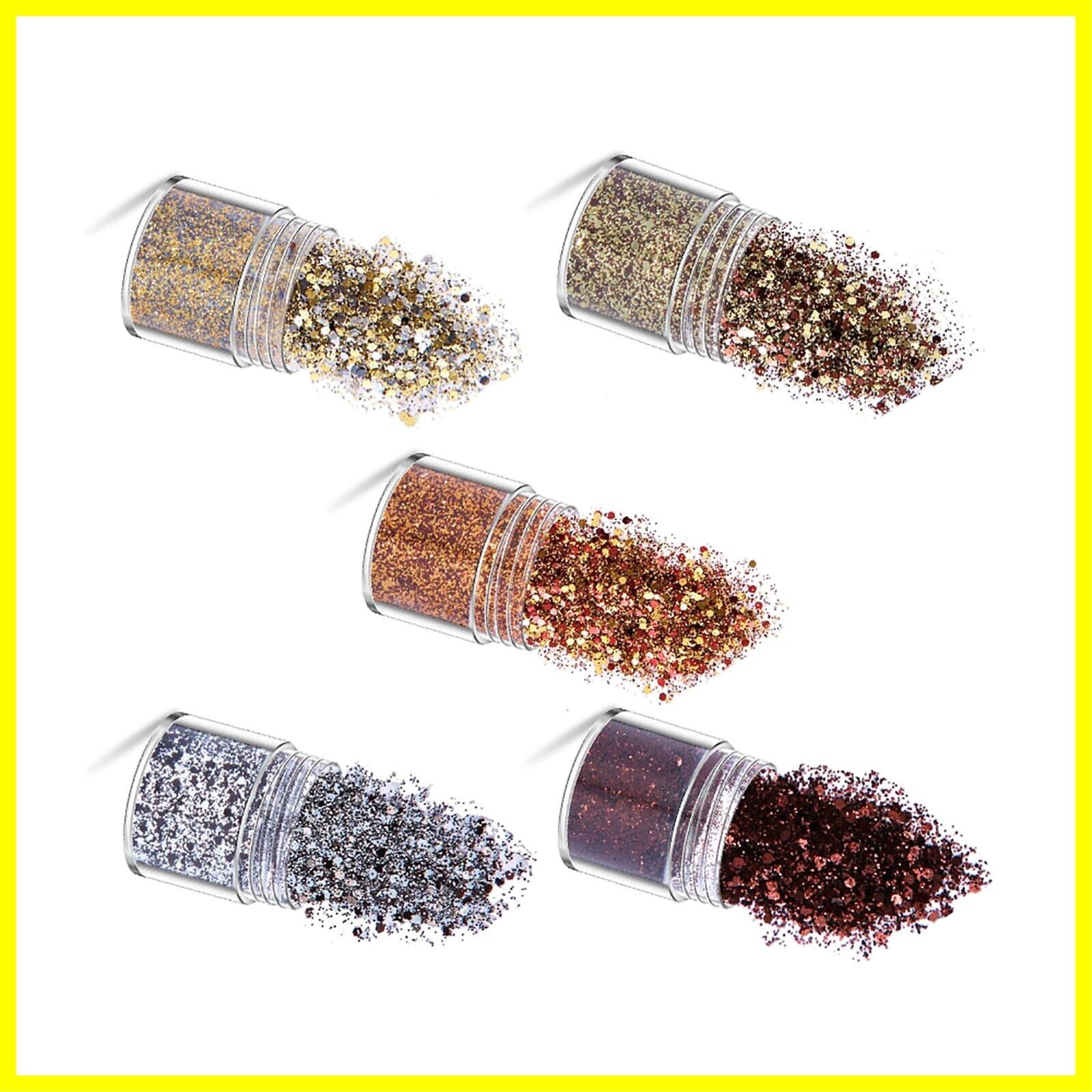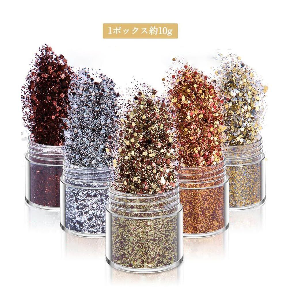 ラメホログラム 5色セット キラキラ ネイルパーツ ネイルアート 容器付き グリッター ラメグリッター ラメパウダー ネイルパウダー 顔飾り ヘア飾り 新年 クリスマス メイク用品 ゴールド (コーヒー)